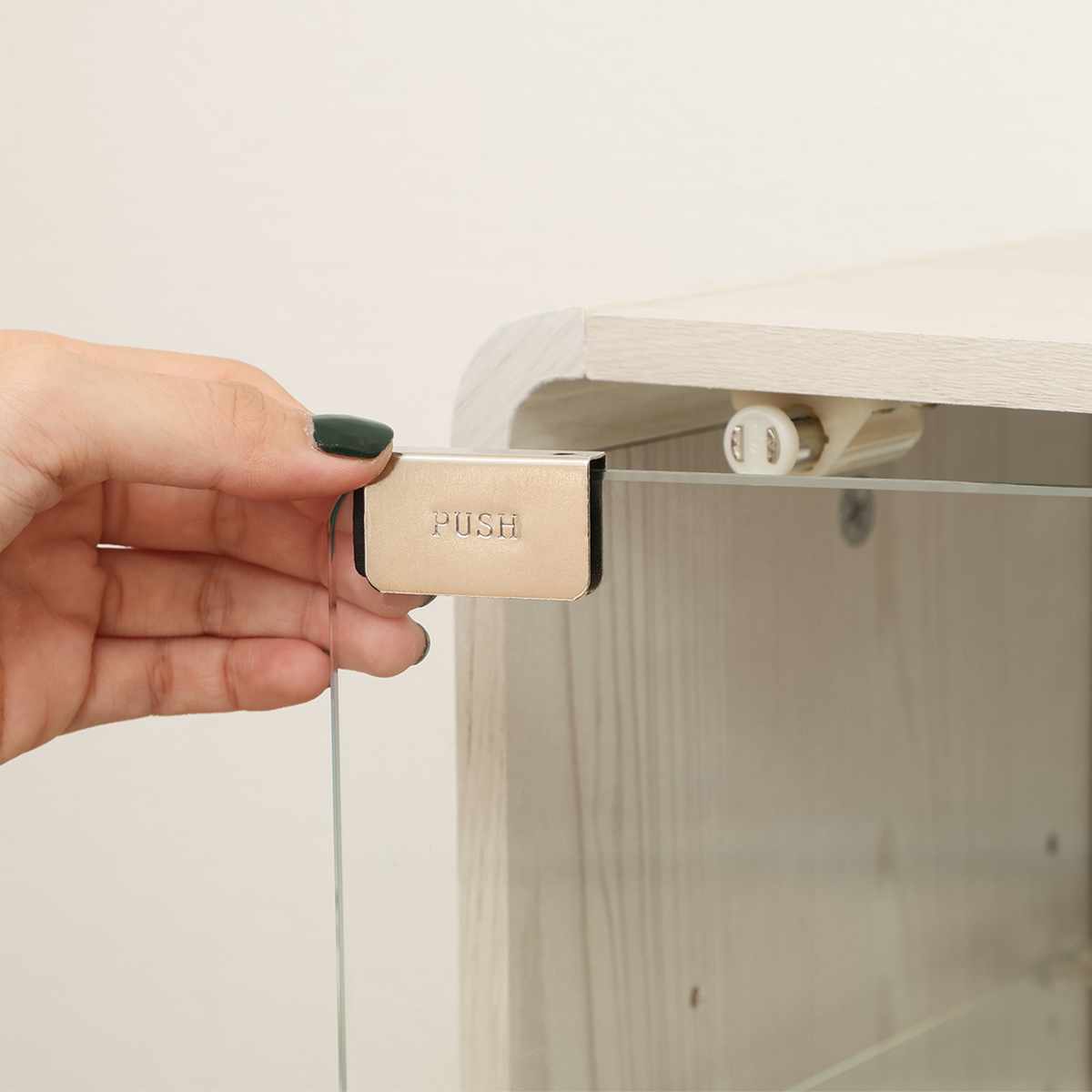 ガラス扉はワンタッチで開閉できるプッシュ式です。取っ手がないので、見た目がフラットでスッキリとしています。
