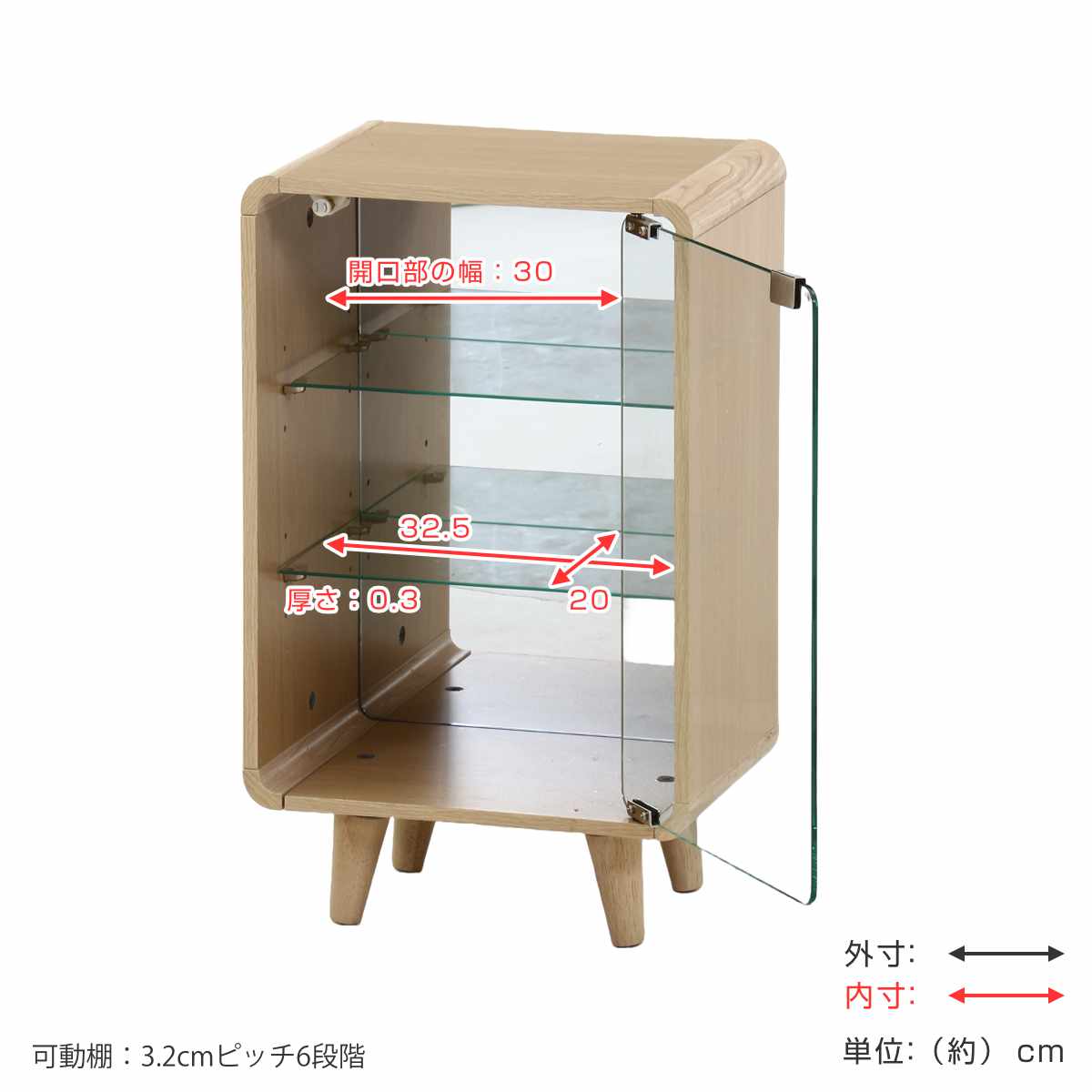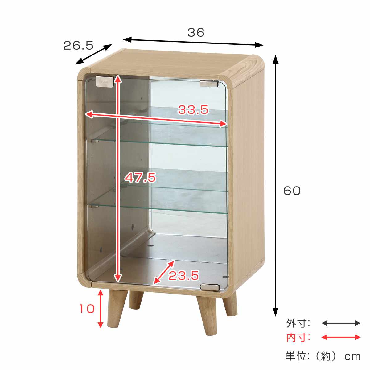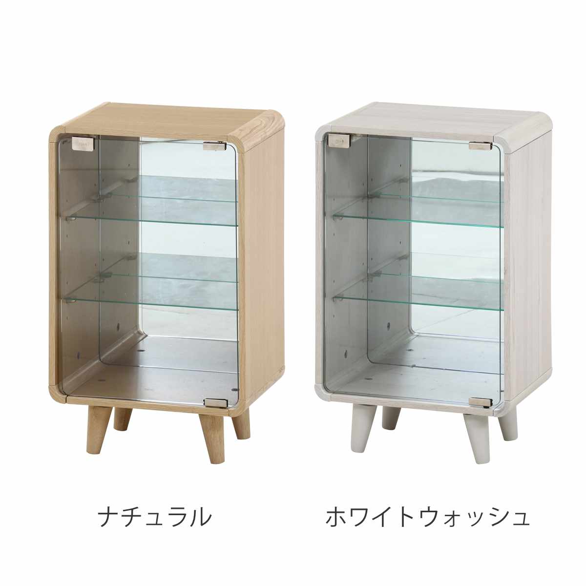 コレクションシェルフ 幅36cm 3段 ガラス扉 背面ミラー 推し活 ( ショーケース コレクションラック シェルフ ケース 棚 ラック ディスプレイ 収納 可動棚 ナチュラル ホワイトウォッシュ ) 【ホワイトウォッシュ】