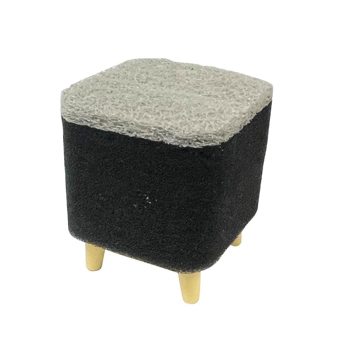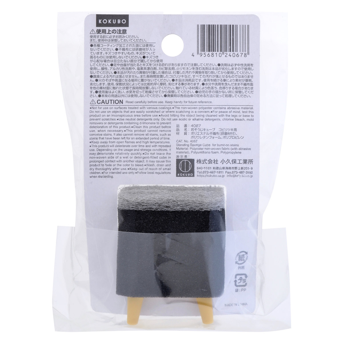 キューブの下に4本の脚があり、ちょこんと置くと自立します。立てて置くと通気性がよく、衛生的に保管できます。何より、立ち姿がユーモラスで、キッチンや洗面台などに置きたくなるデザインです。汚れに気づいたらサッと取って掃除できます。