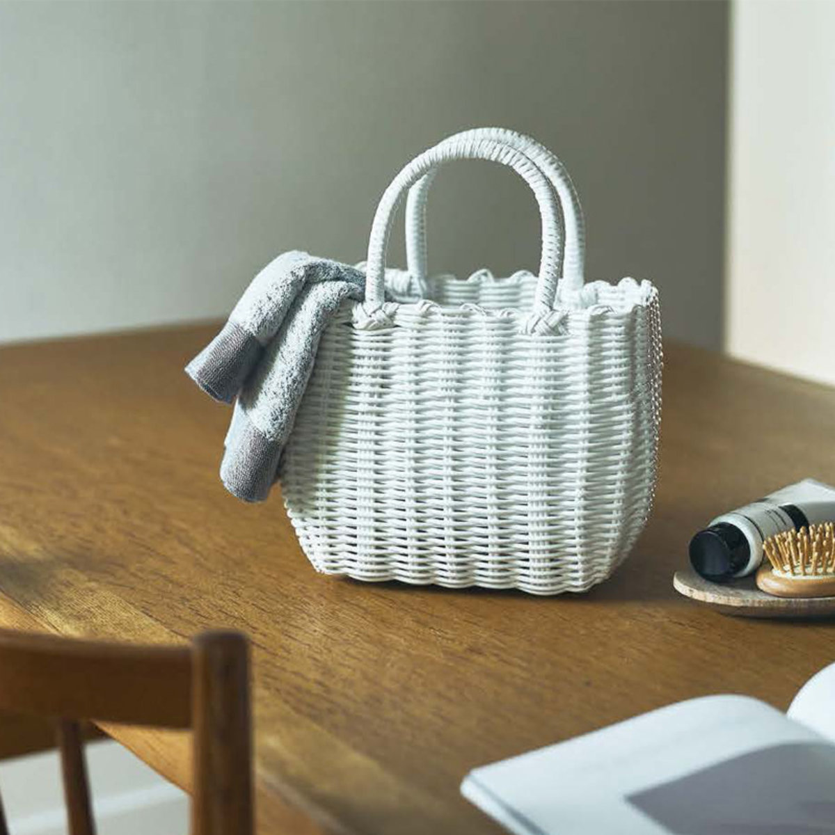 バスケット al.atte 客室用の洗える抗菌湯かごS ( バッグ 鞄 小物入れ カゴバッグ かご トートバッグ 温泉バッグ 銭湯 湯カゴ カゴ 籠 手提げ 丸洗い 抗菌 カバン 天然素材風 プラスチック製 手編み ) 【ホワイト】
