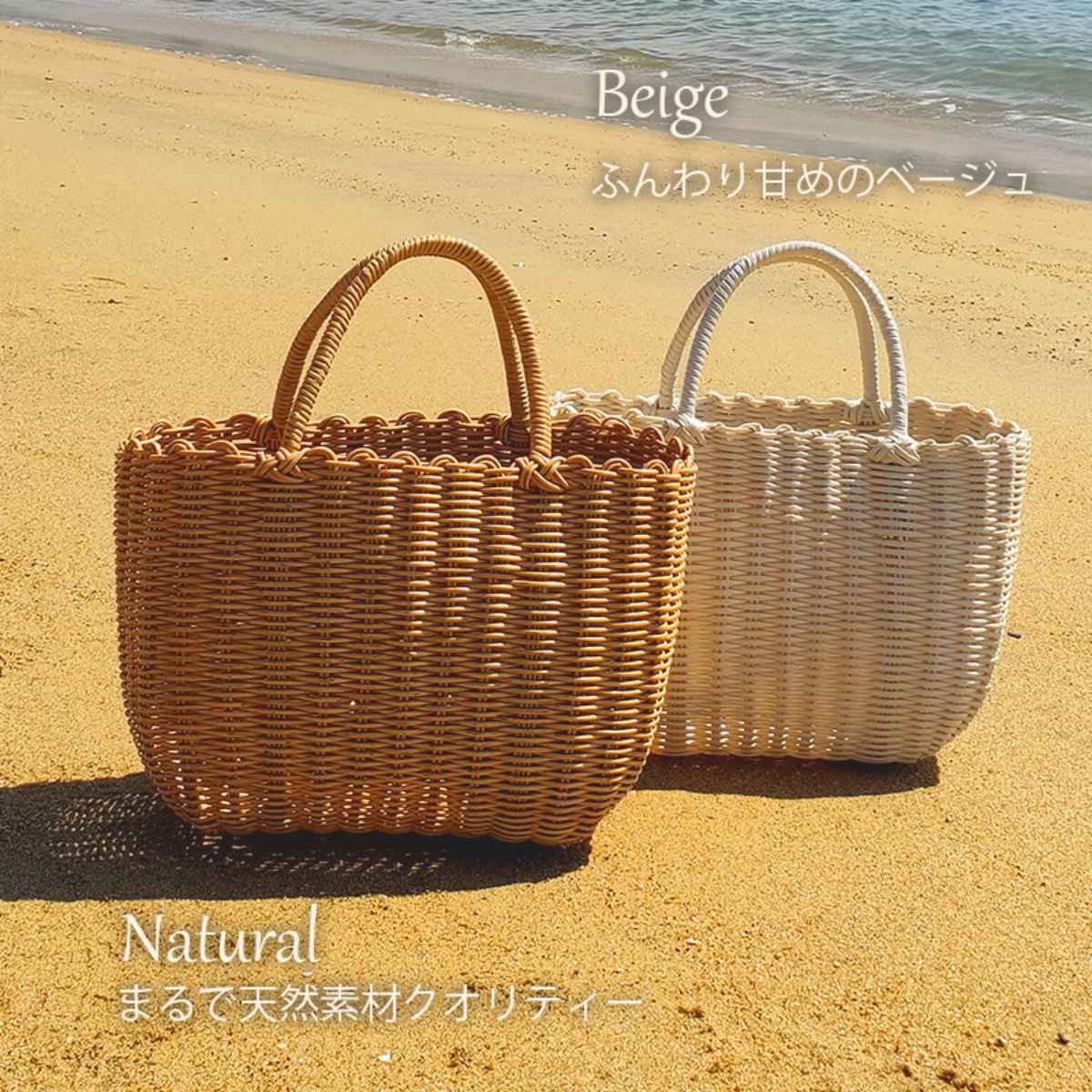 バスケット al.atte 客室用の洗える抗菌湯かごL ( バッグ 鞄 小物入れ カゴバッグ かご トートバッグ 温泉バッグ 銭湯 湯カゴ カゴ 籠 手提げ 丸洗い 抗菌 カバン 天然素材風 プラスチック製 手編み ) 【ベージュ】
