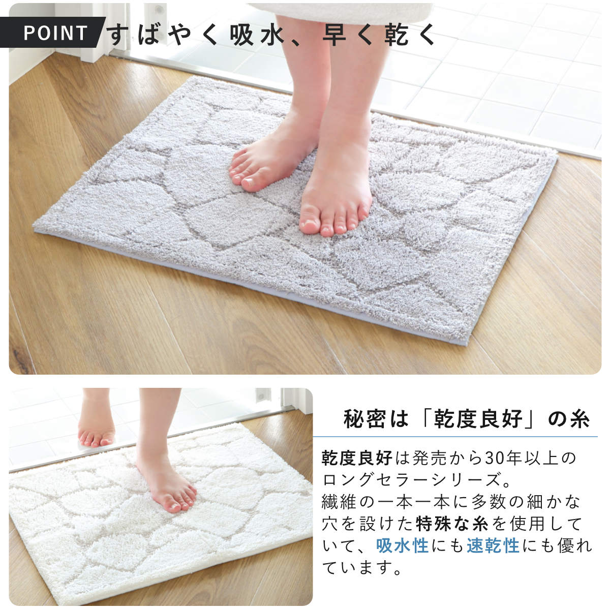 バスマット 乾度良好 ストーン 45×60cm 速乾 ( 風呂 マット 速乾性 吸水 吸水性 抗菌 防臭 滑り止め お風呂 浴室 長方形 吸水速乾 バス バス用品 お風呂用品 バスグッズ 洗える 丸洗い 足ふき 60cm ) 【グレー】