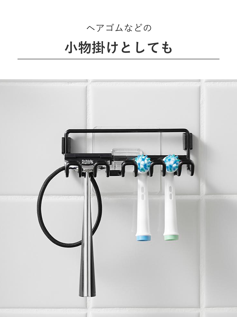 電動歯ブラシ用ブラシはもちろん、カミソリやヘアゴムなどの小物収納にもお使いいただけます。