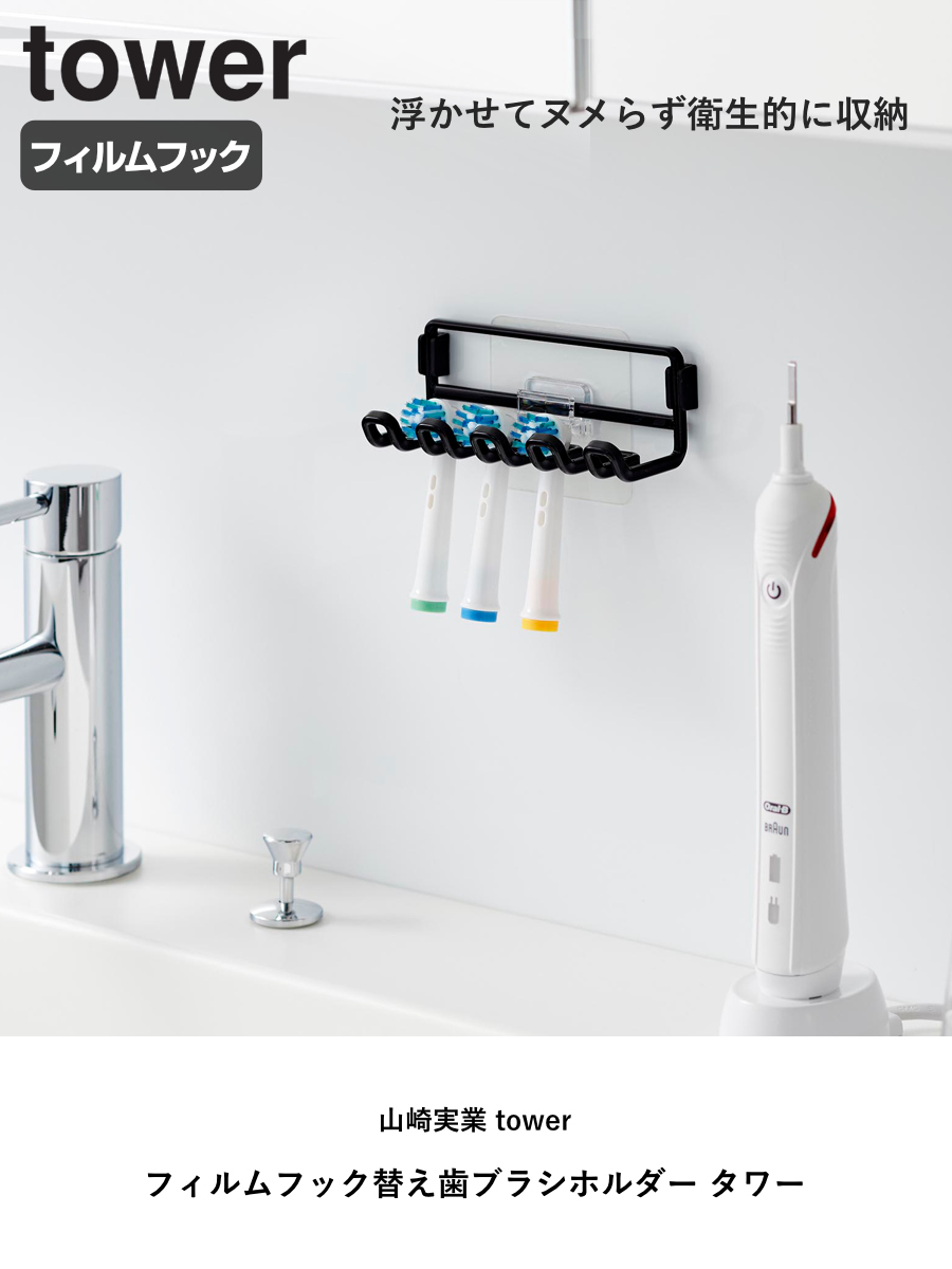 山崎実業 tower フィルムフック替え歯ブラシホルダー タワー ( 4903208102230 タワーシリーズ 替え歯ブラシホルダー フィルムフック 歯ブラシホルダー 替え用 歯ブラシ ホルダー 洗面所 歯ブラシ立て 収納 電動歯ブラシ ) 【ホワイト】