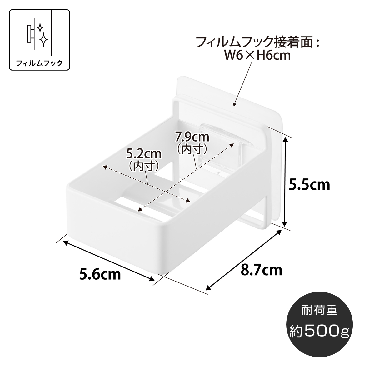 | サイズ | 本体:幅5.6×奥行8.7×高さ5.5cm(フィルムフック・クッション含まず) フィルムフック接着面:幅6×高さ6cm |