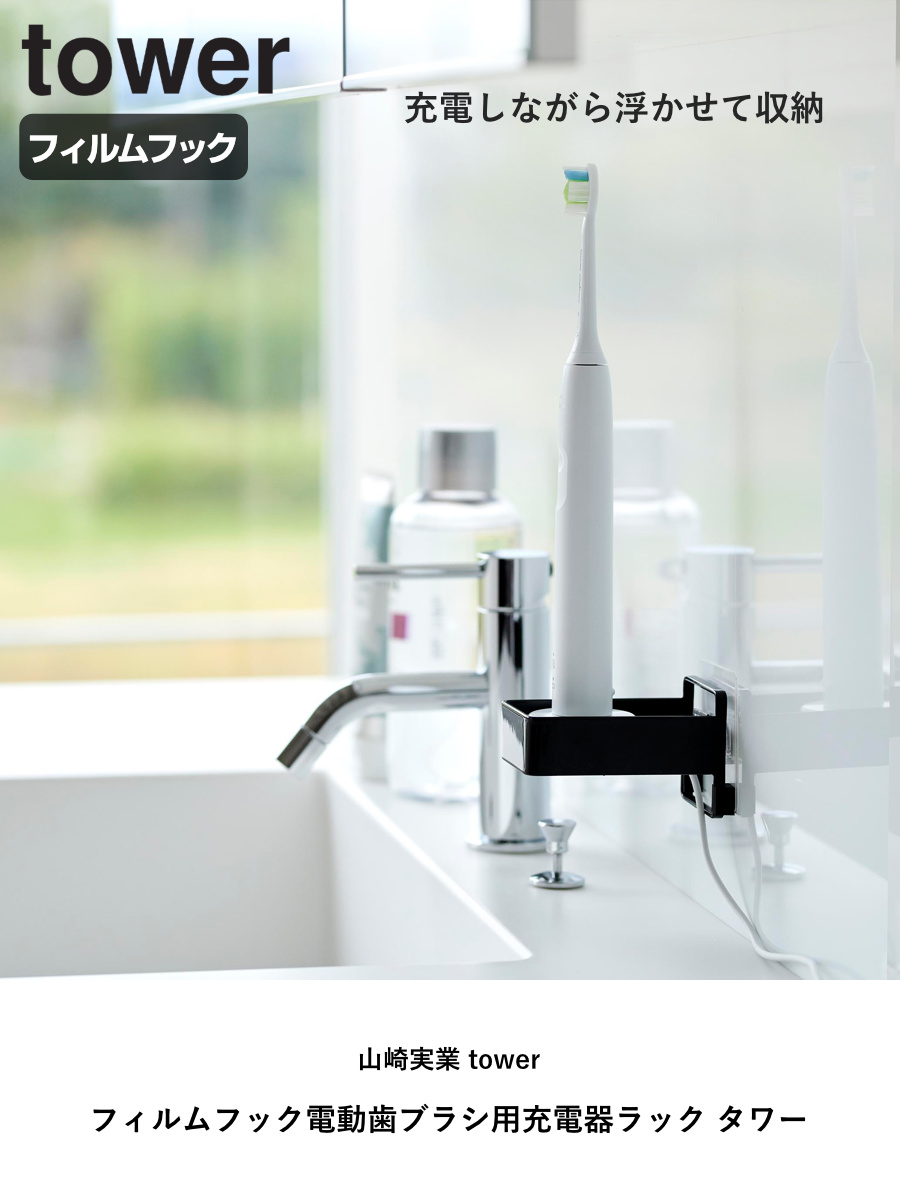 山崎実業 tower フィルムフック電動歯ブラシ用充電器ラック タワー ( 4903208102254 タワーシリーズ 電動歯ブラシ用充電器ラック フィルムフック 電動歯ブラシ 充電器ラック 充電器 ラック 歯ブラシ ホルダー ) 【ホワイト】