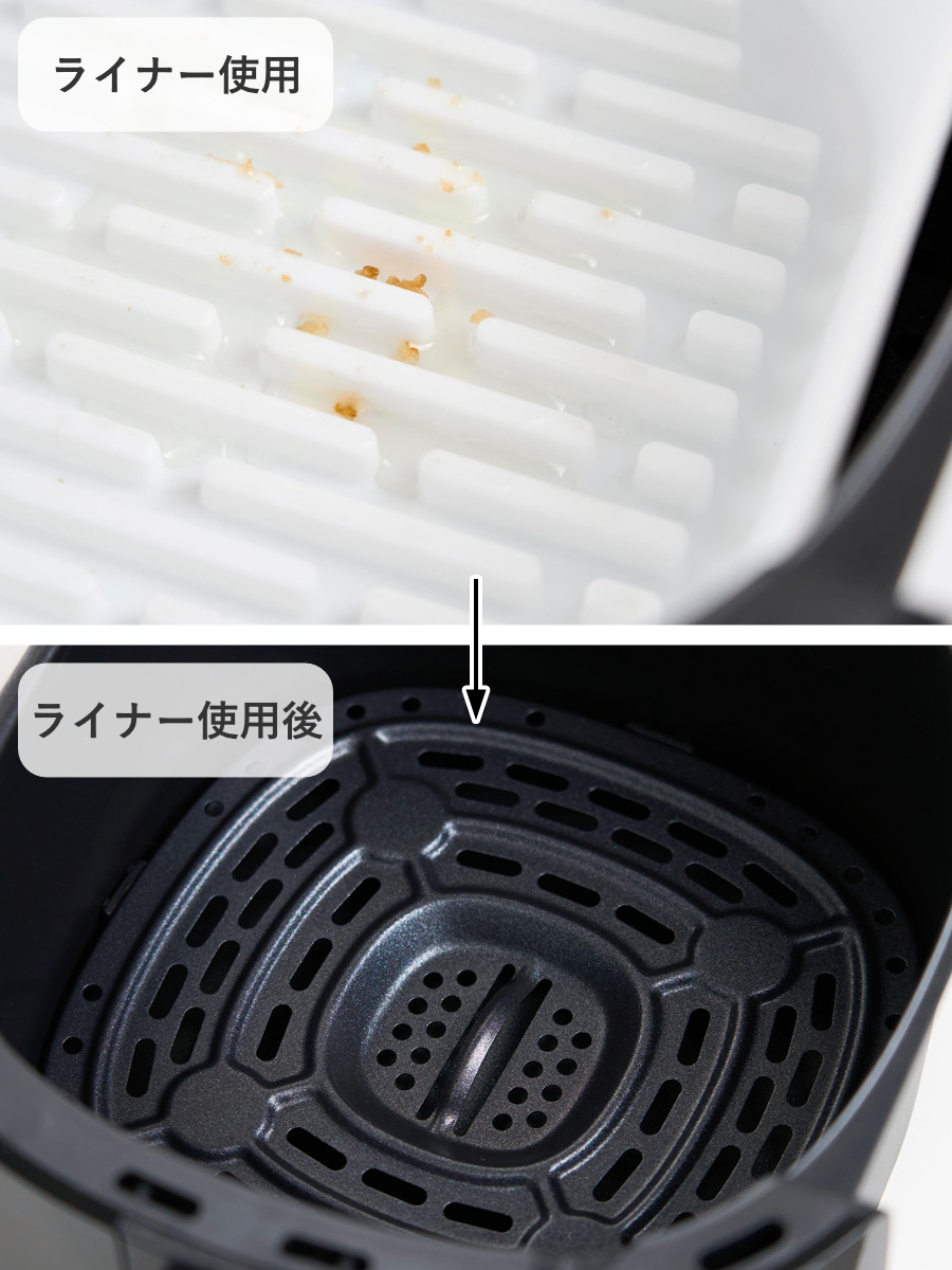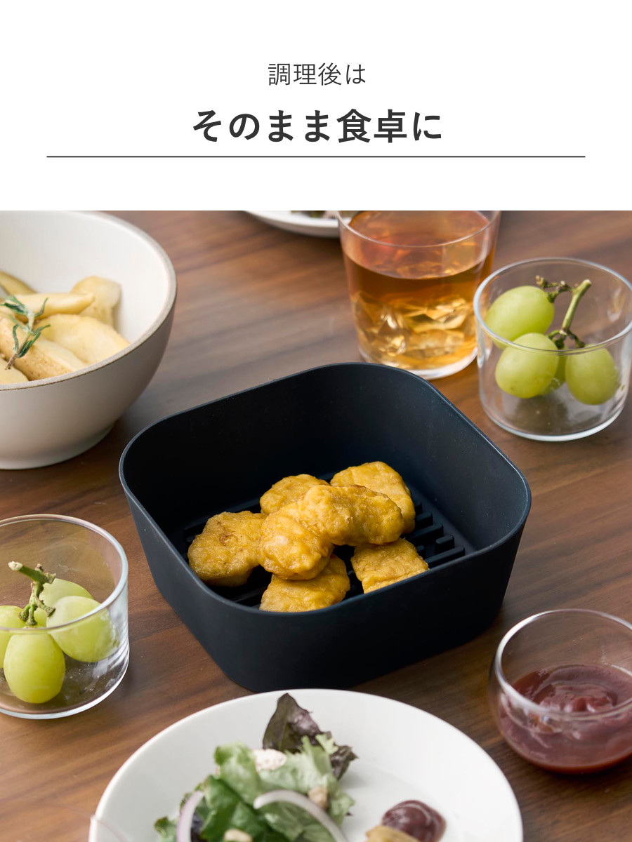 底面の凹凸により余分な油が落ちヘルシーに調理ができる、シリコーン製のライナー16cmです。ライナーを使用することでノンフライヤーの内鍋を保護し、食材が鍋底に焦げ付くのを防ぎます。
