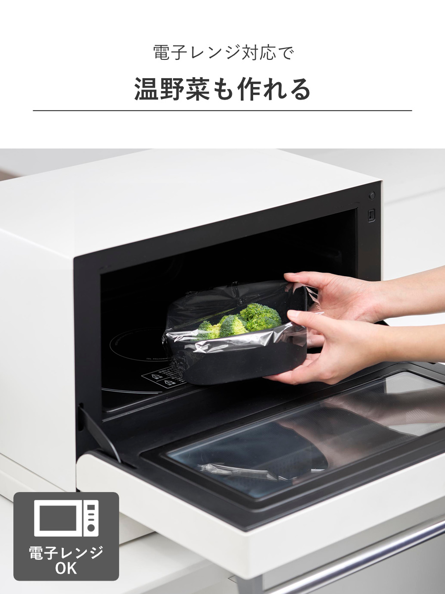 電子レンジに対応しているので、ラップをかけて温野菜も作れます。食品の温め直しにも便利です。