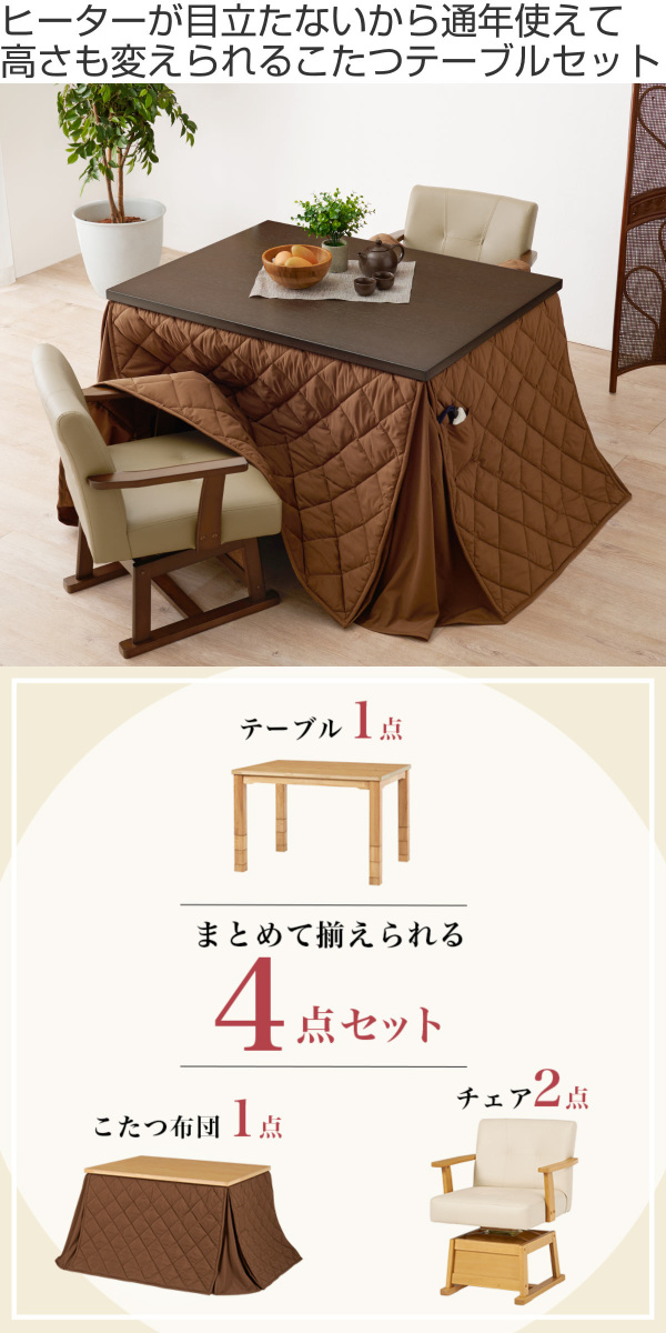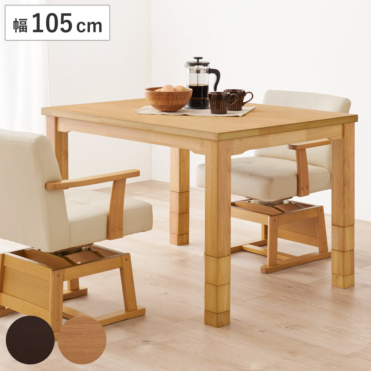ダイニングこたつセット 4点セット マロン 幅105cm 継脚こたつテーブル×1 こたつ布団×1 チェア×2 ( こたつ 布団 テーブル ハイタイプ コタツ 回転椅子 2人用 天然木 木製 高さ調節 45~70cm 継ぎ足 ダイニングテーブル 長方形 ) 【ダークブラウン】