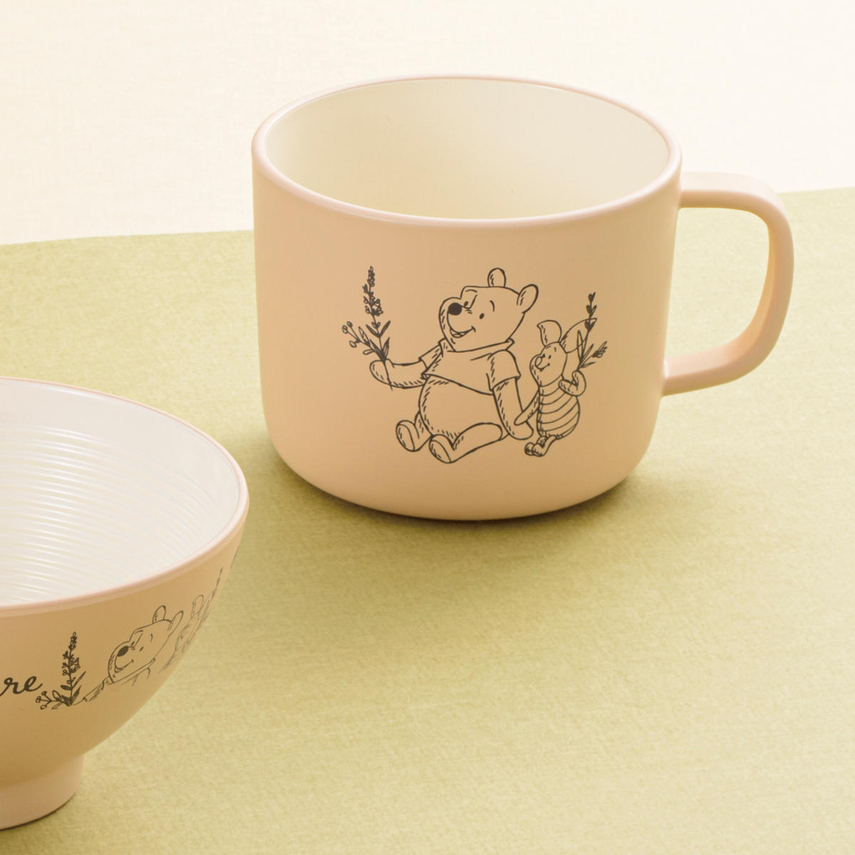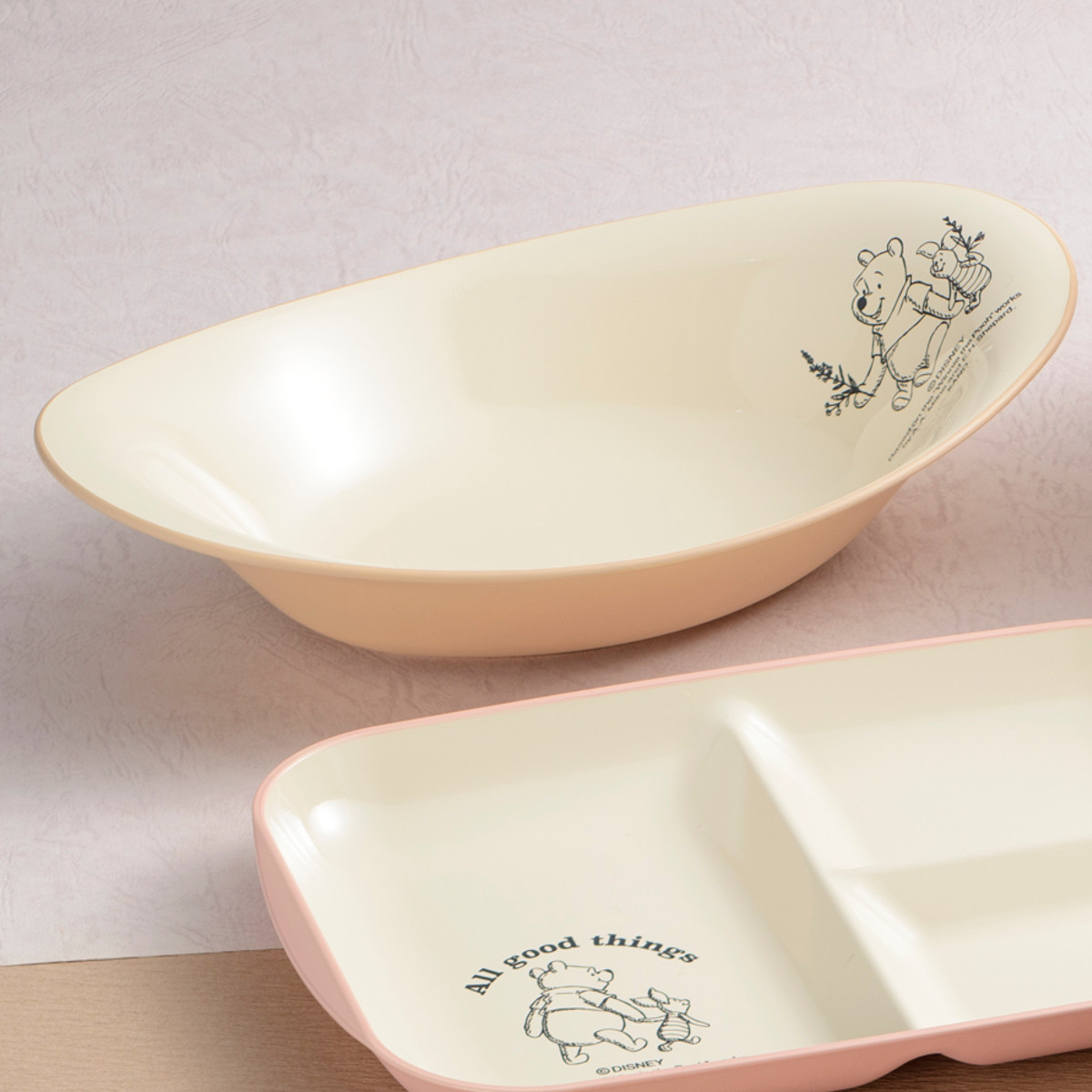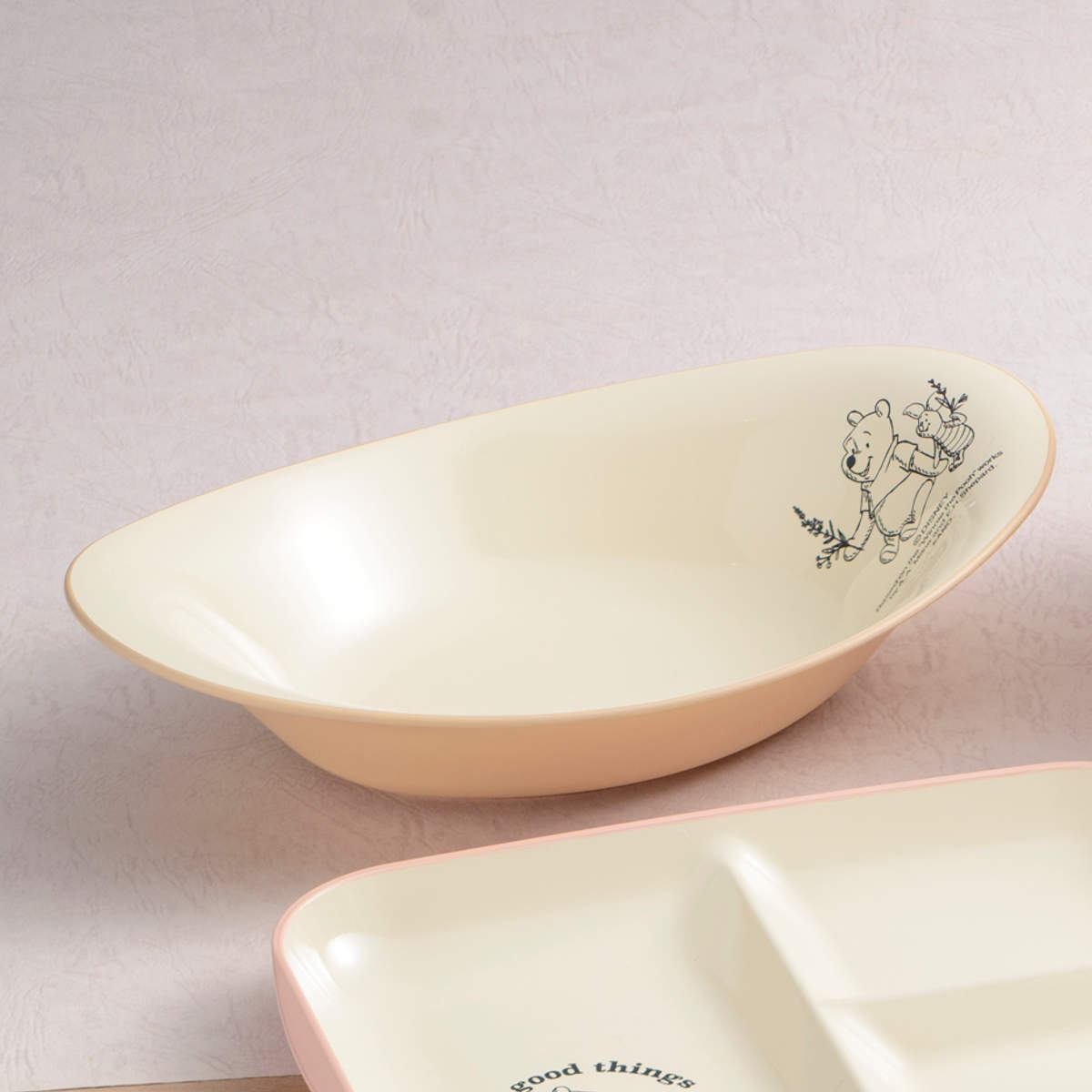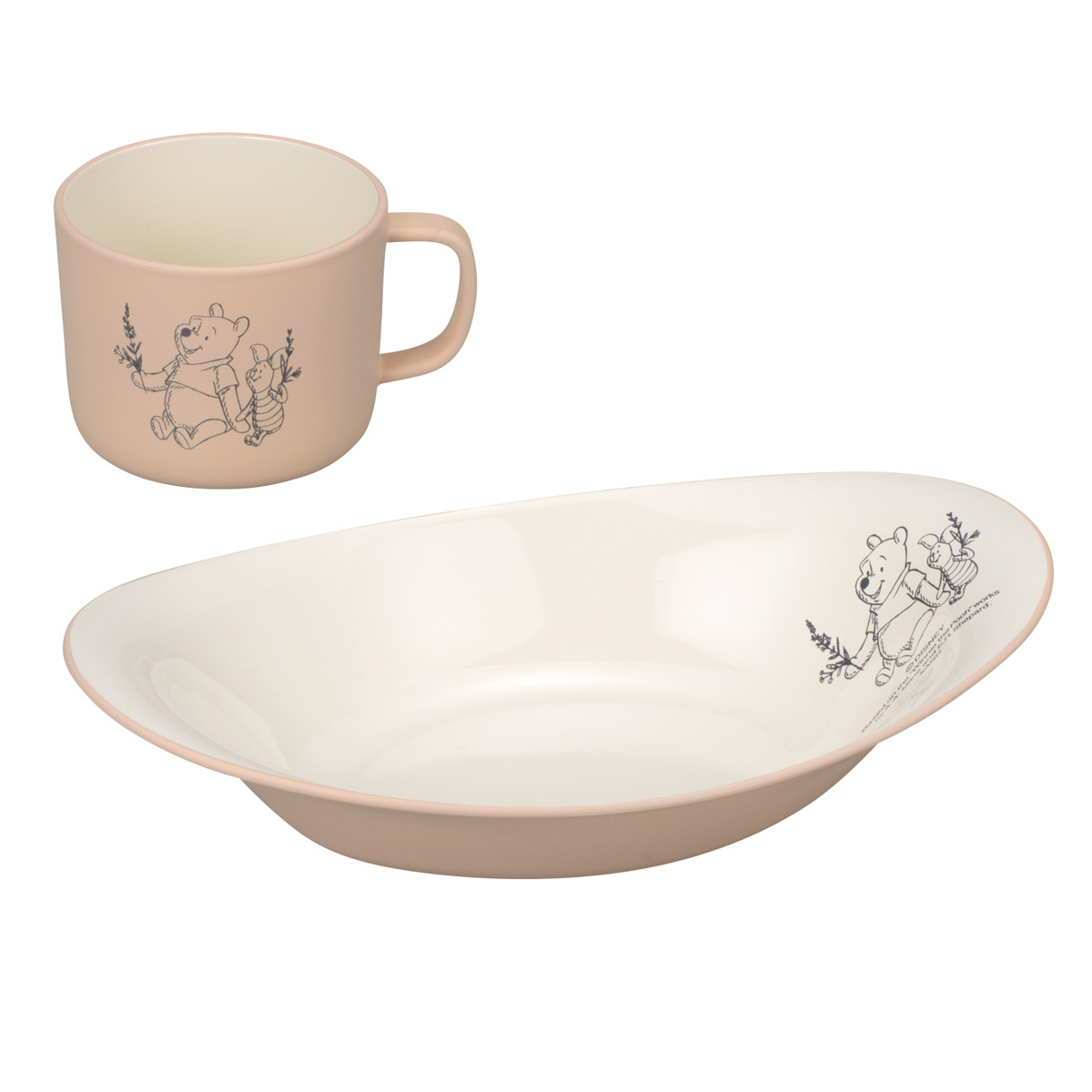 仲良しピグレットとの睦まじさを表現した愛らしいデザインです。落ち着いた色合いが優しく、食卓にもおしゃれに馴染みます。