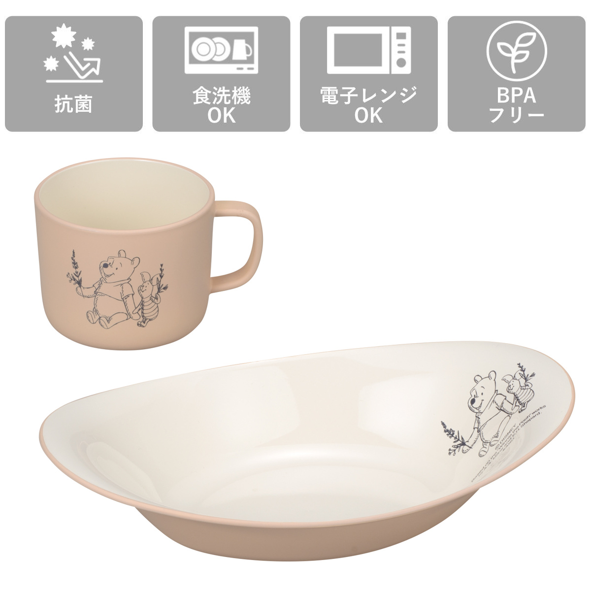 カレーパスタ皿 マグカップ Pooh Bee キッズセット25 くまのプーさん ( BPAフリー 日本製 抗菌 電子レンジ対応 食洗機対応 プーさん ピグレット キッズ 子供 子ども カレー皿 パスタ皿 プレート お皿 皿 ディズニー キャラクター )