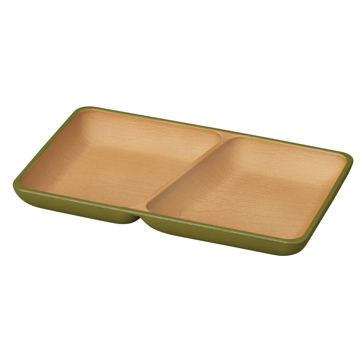 プレート earth color 抗菌 スクエア ( BPAフリー 日本製 電子レンジ対応 食洗機対応 ランチプレート 皿 お皿 仕切り皿 ランチ皿 おしゃれ かわいい 軽い 割れにくい 2つ仕切り 24cm 子ども 介護 抗菌加工 木目調 ) 【オリーブ】