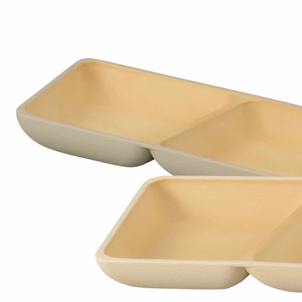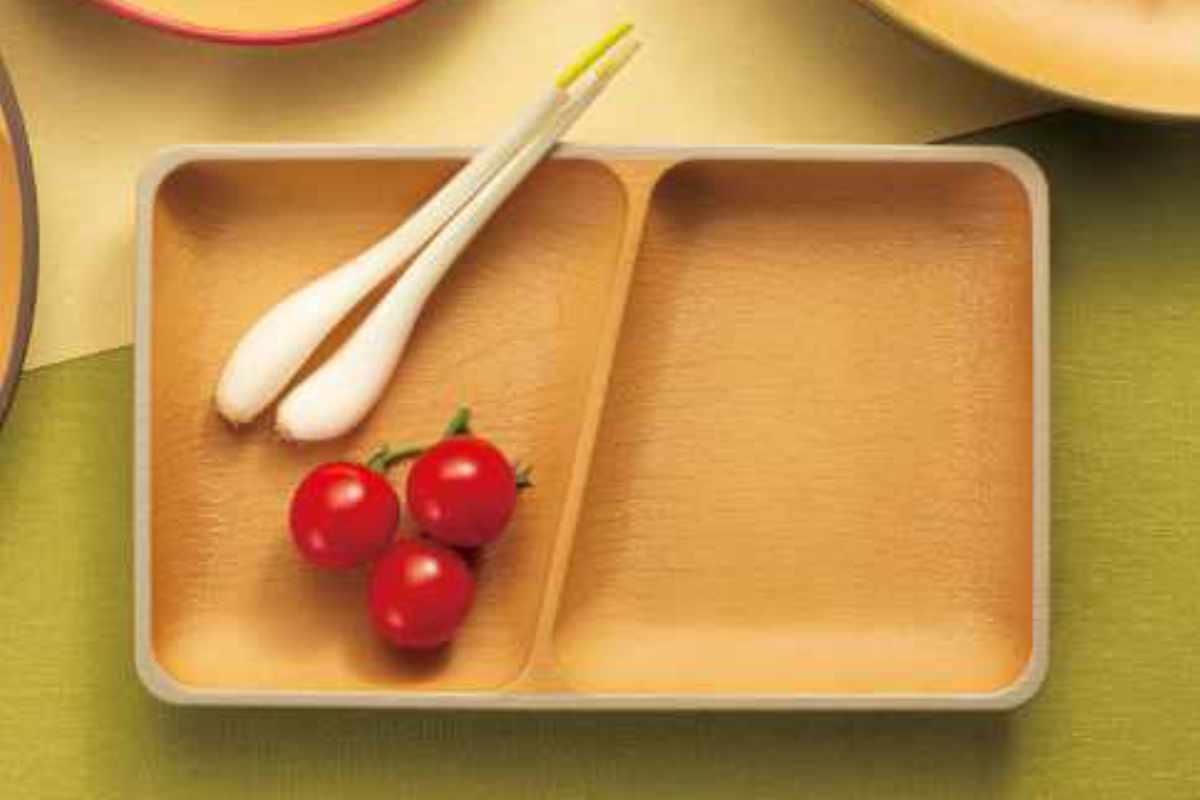 サラダ、パン、フルーツなどをのせた朝食やランチにぴったりな、2つの仕切りプレートです。程よい高さの仕切りでスプーンですくいやすく味が混ざることがありません。