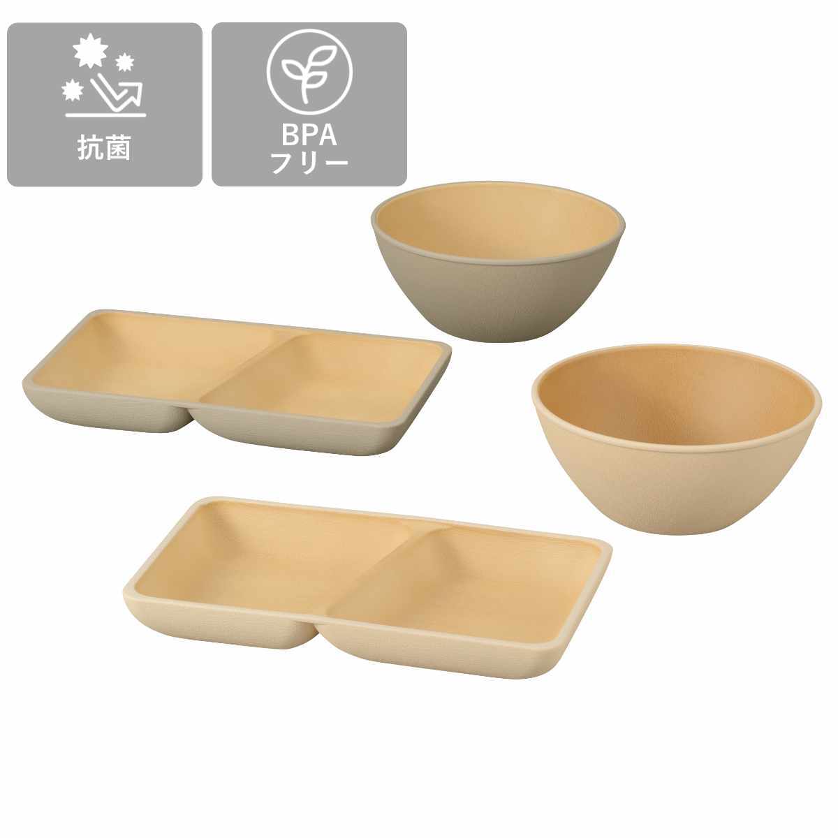 プレート ボウル earth color スクエア 2個セット ( BPAフリー 日本製 抗菌 電子レンジ対応 食洗機対応 皿 お皿 器 うつわ 鉢 おしゃれ かわいい 仕切り皿 ランチ皿 2つ仕切り スープボウル 角皿 木目調 )