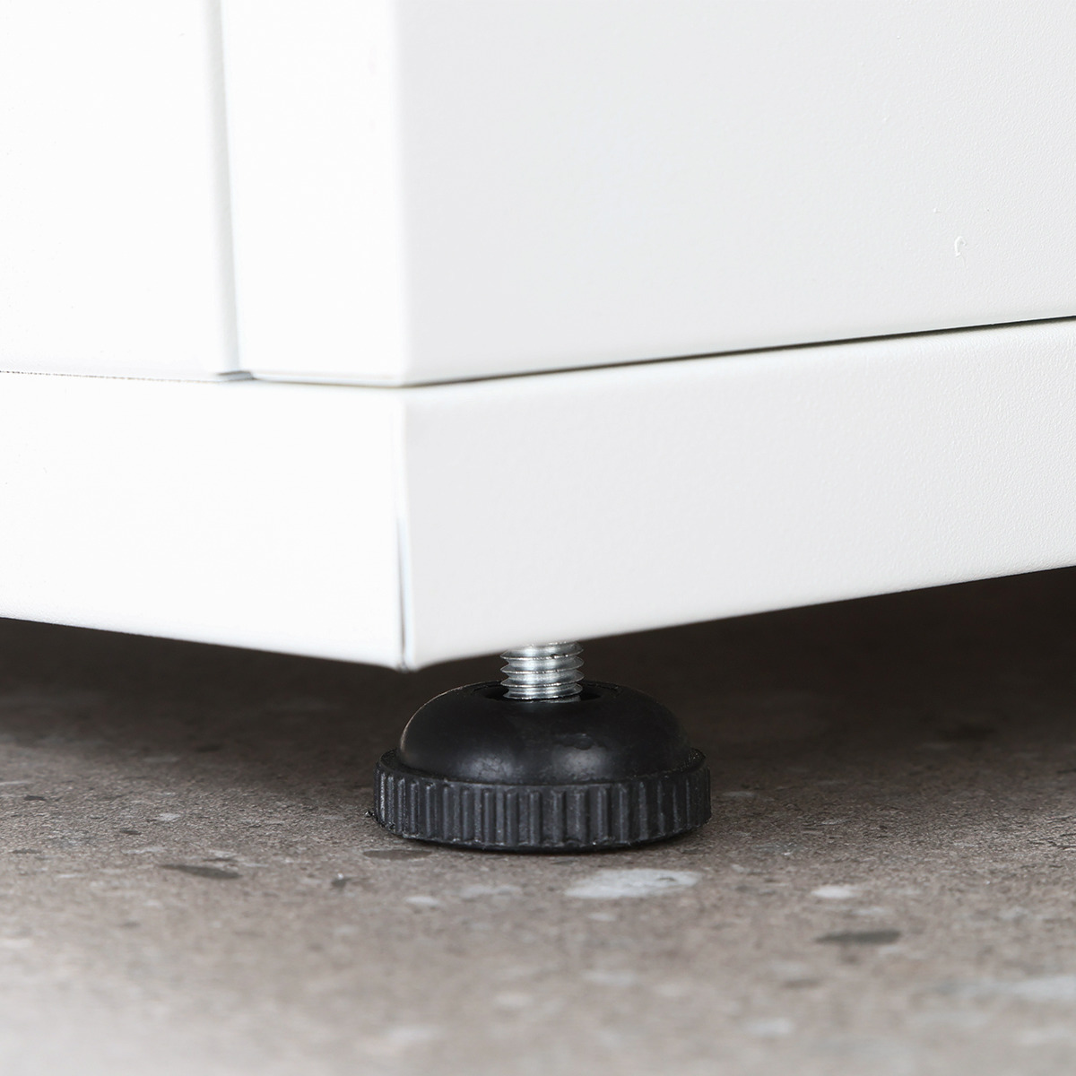 | 2か所のアンカー固定用穴 地面に固定するためのアンカー用の穴が付いています。使用しない時は付属のキャップをして穴をふさげます。 | ガタ付き防止するアジャスター アジャスター付きなので、斜面の場所でもしっかり安定して設置できます。 |