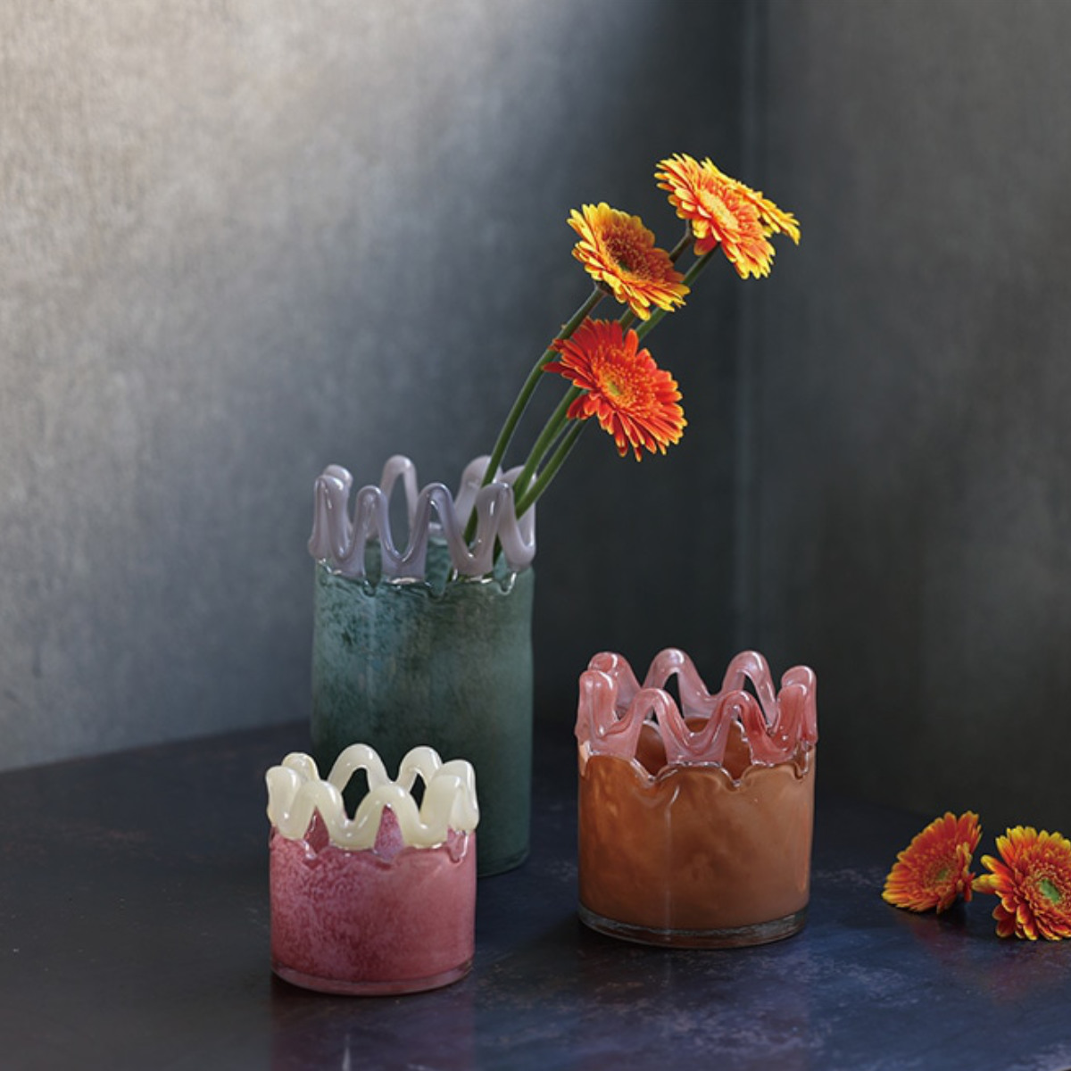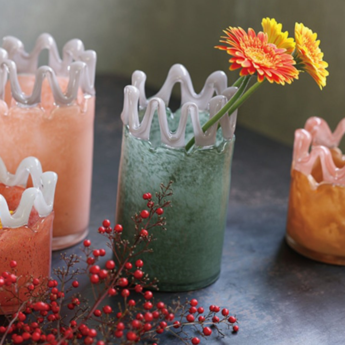 美しい波模様がアクセントのフラワーベースです。お花を飾るのはもちろん、そのままオブジェとして飾ってもおすすめです。デスク、リビング、窓辺、どこに置いても存在感が際立ち、空間そのものを彩ります。