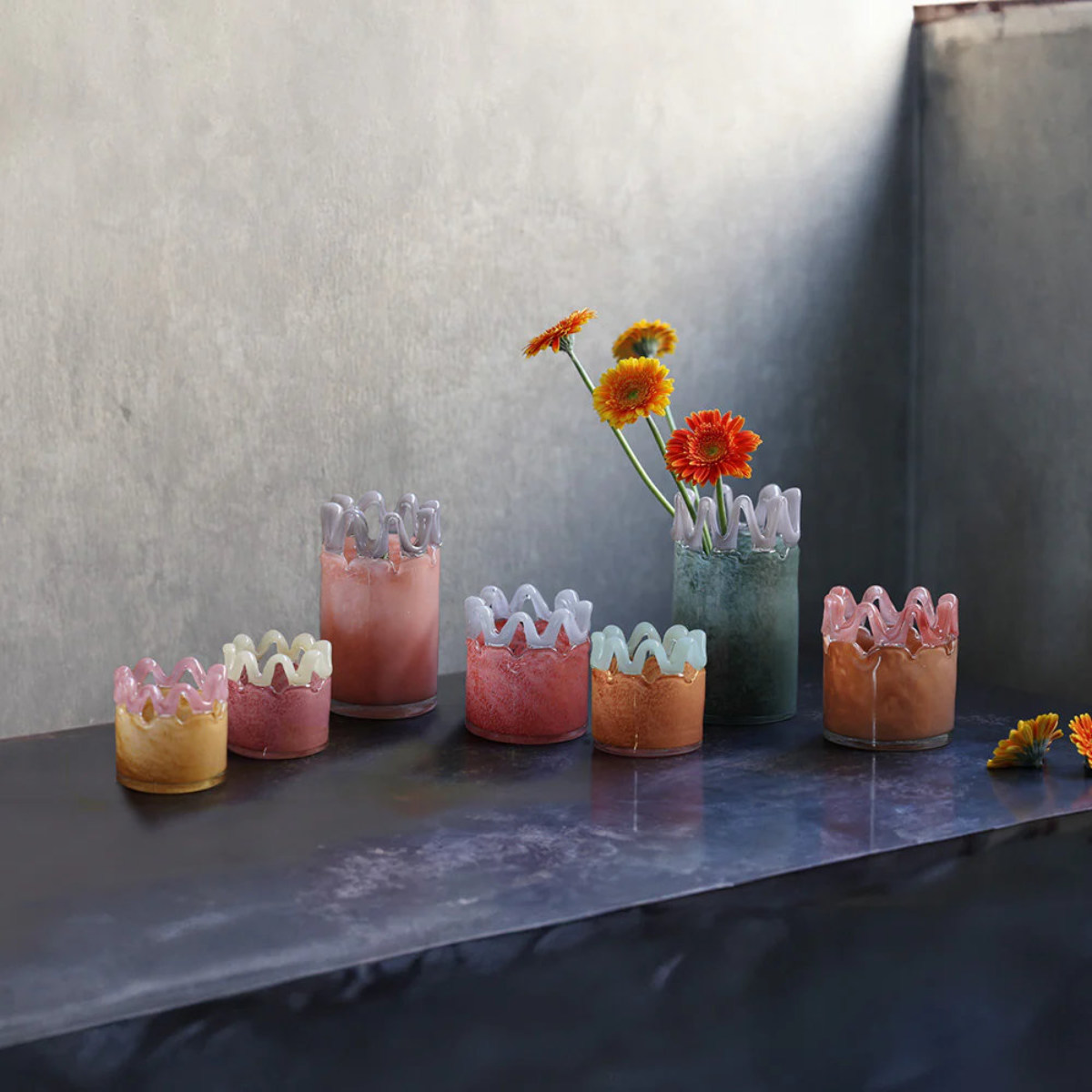 縁に施された不規則な波模様が、まるで水面の波紋を閉じ込めたかのような優雅さを演出しています。お家やカフェなどの様々なインテリアに、自然なリズム感と躍動的な美しさをもたらします。