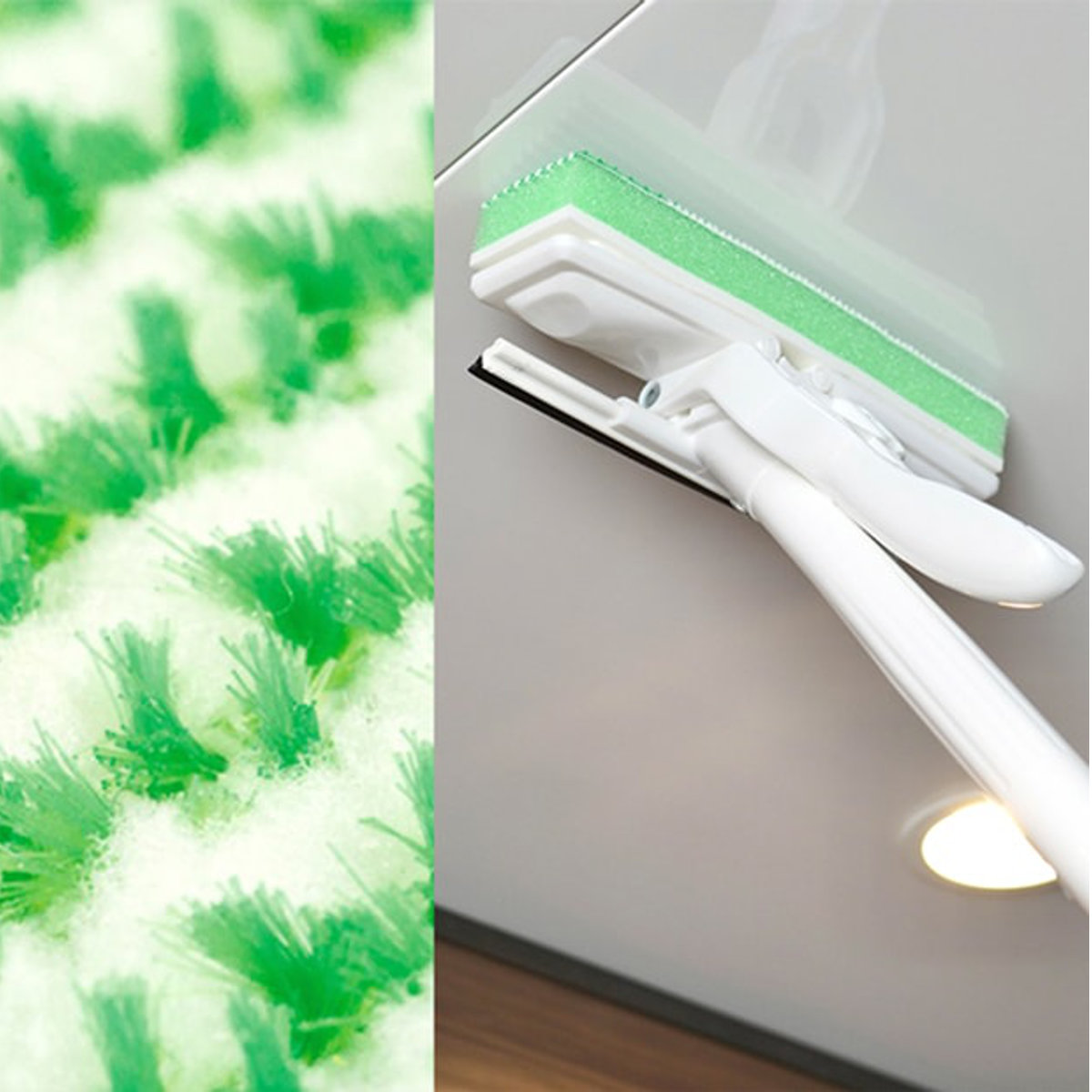 水を含ませてこするだけで、コシのあるブラシ繊維がカビをかき出し、柔らかい吸着繊維がカビを拭きとります。浴室の天井・壁のお掃除とカビ取りを一度に済ませることができます。