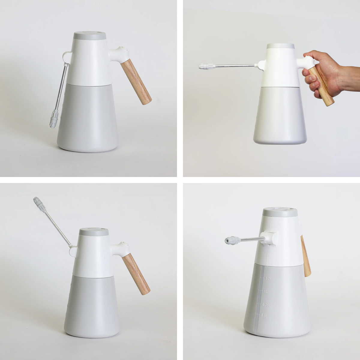 観葉植物やガーデニングにぴったりの電動ミストです。植物の種類や用途に合わせて水量と角度が調整でき、毎日の水やりが手軽に楽しくできます。