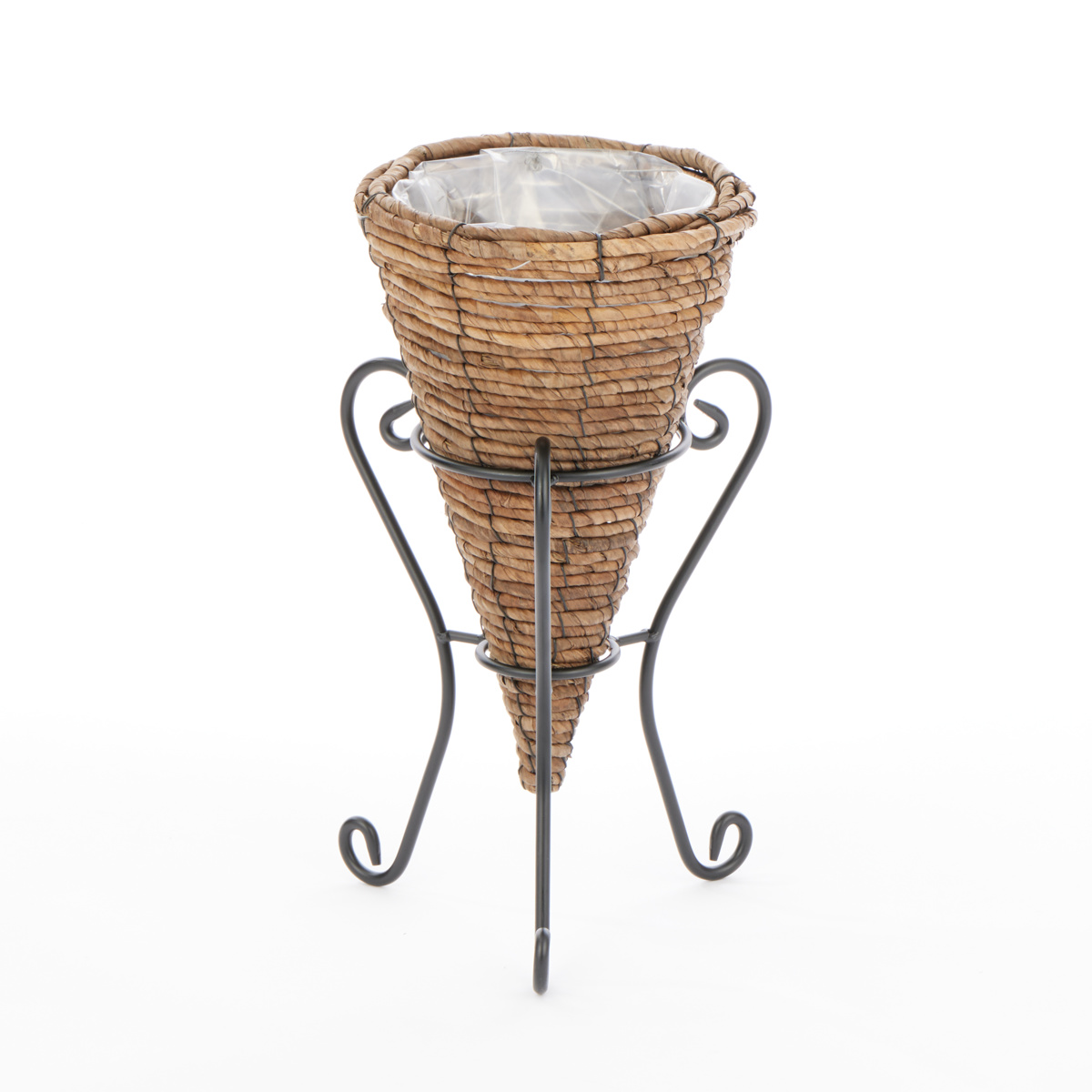 ●スチール製本体にナチュラルなバスケットがセットされたポットスタンドです。