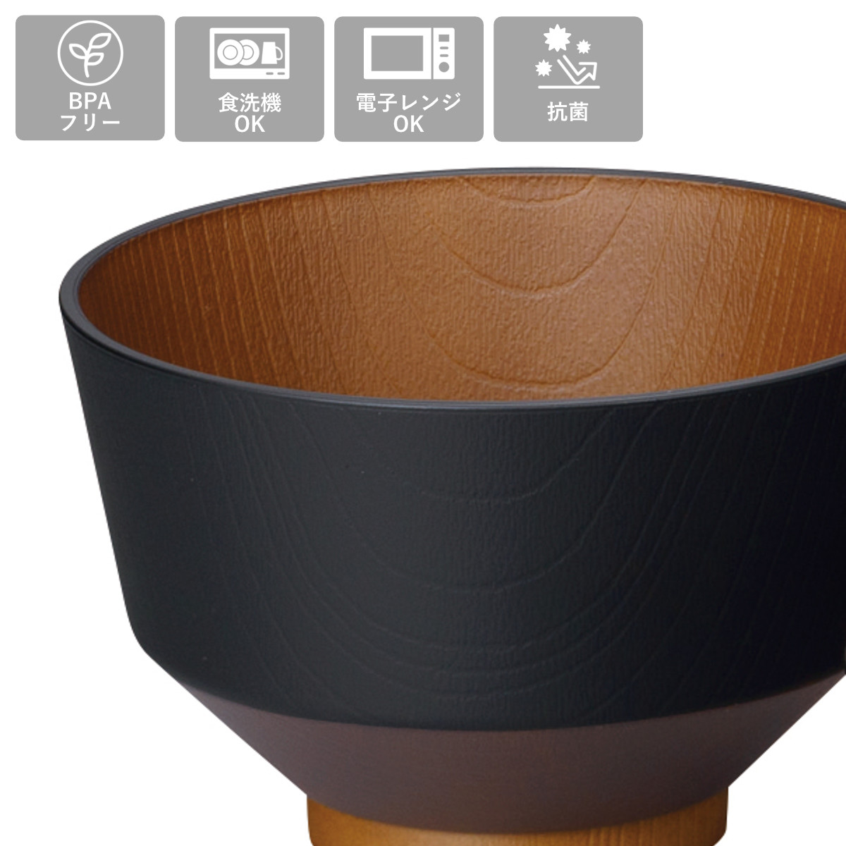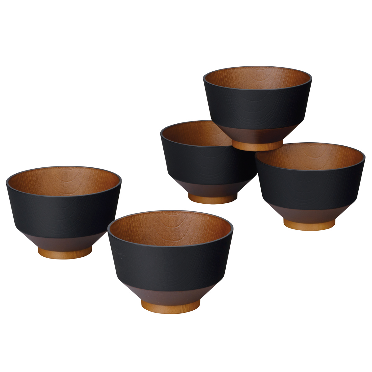 汁椀 和の色 漆黒 5個入 ( 電子レンジ対応 食洗機対応 BPAフリー 日本製 碗 お椀 味噌汁碗 おしゃれ 軽い 割れにくい 味噌汁 スープ 国産 大人 子ども 木目調 抗菌加工 )