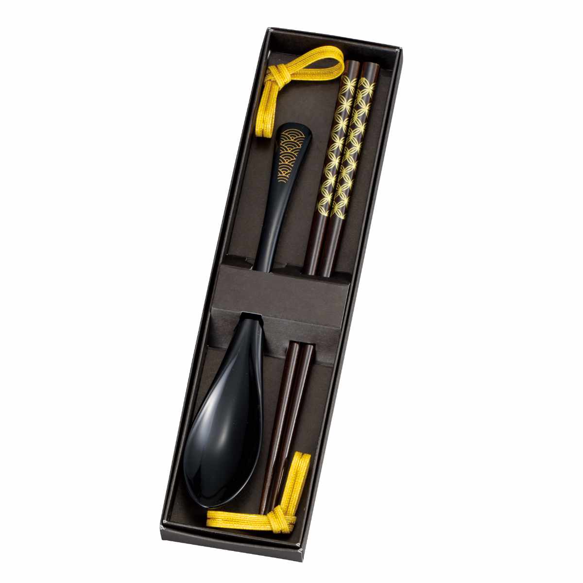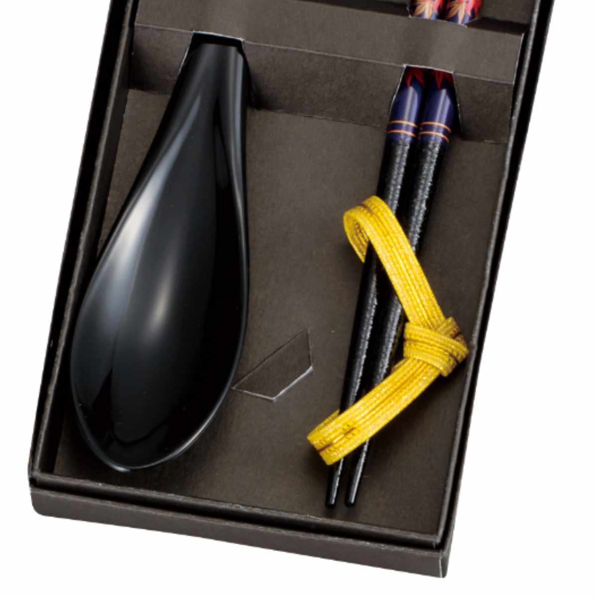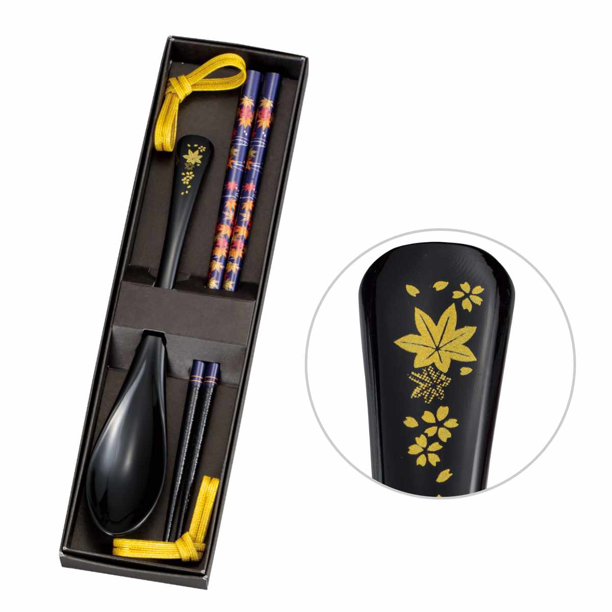 お箸22.5cm、スプーン19.5cm、箸置きのセット商品です。お箸は木製で手に馴染みます。スプーンは口当たり優しく和スイーツのおもてなしにピッタリです。ギフトBOX入りで結婚祝いなどの贈り物にも最適です。安心の日本製です。