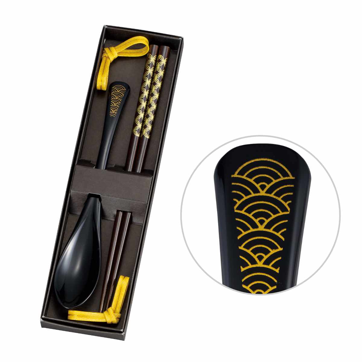 箸 スプーン 箸置き 3点セット ( 日本製 カトラリー お箸 セット 箸おき カトラリーレスト おしゃれ 和柄 国産 スリム ボックス入り 贈り物 父の日 母の日 敬老の日 箱入り ) 【青海波】