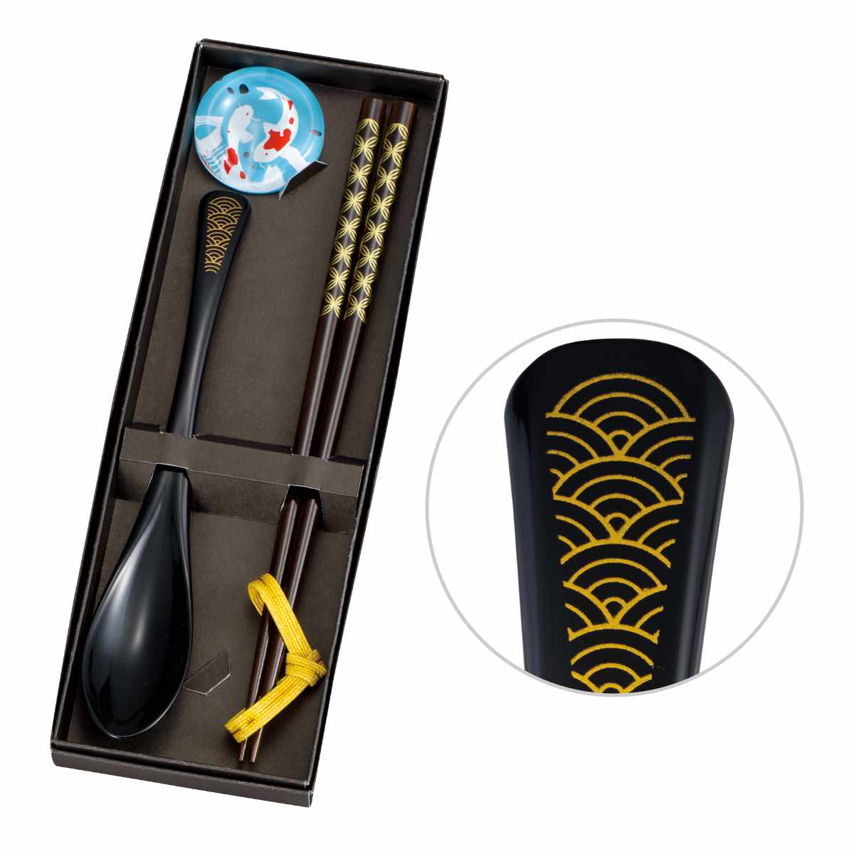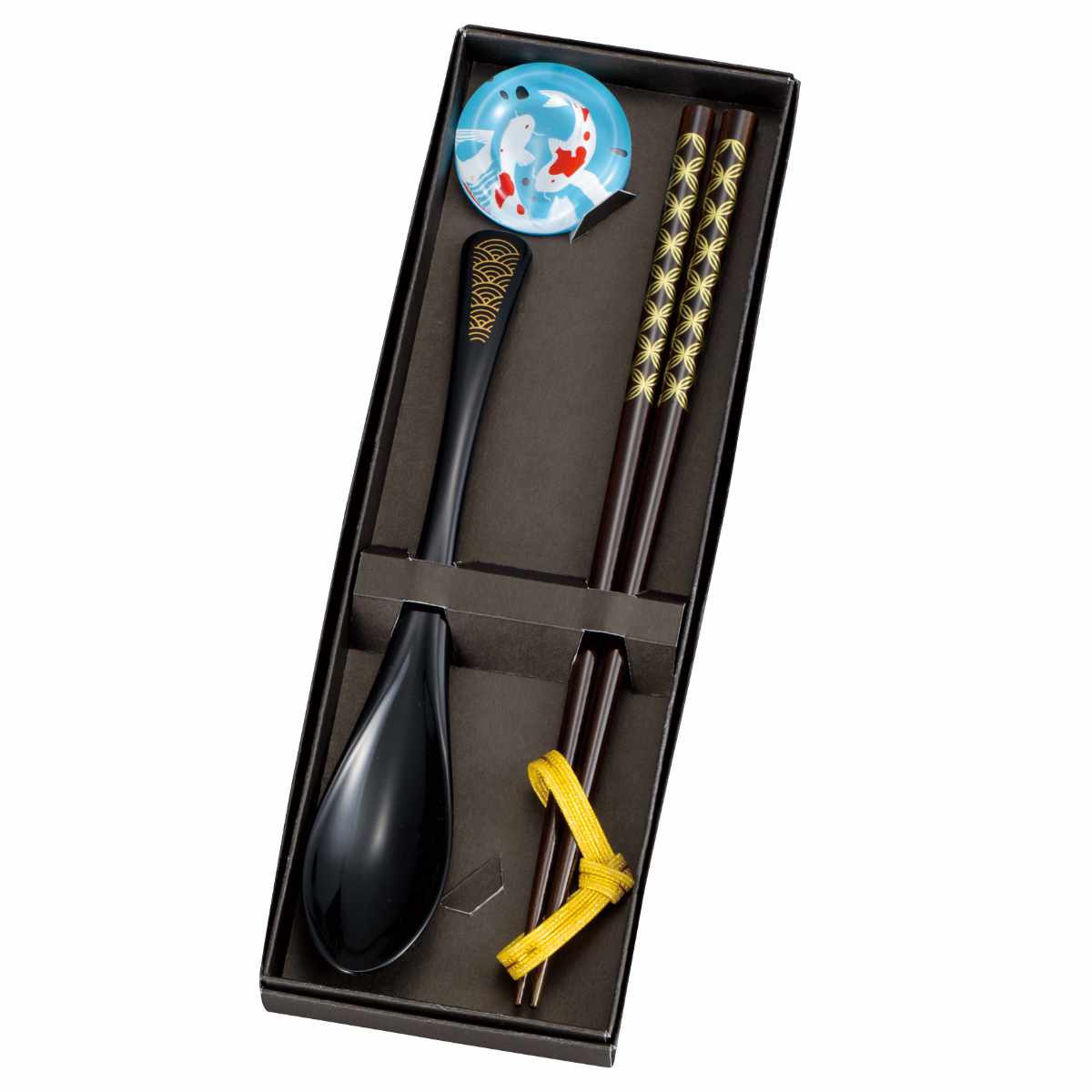 箸 スプーン スプーンレスト 4点セット ( 日本製 カトラリー お箸 セット 箸置き 箸おき カトラリーレスト おしゃれ 和柄 国産 スリム ボックス入り 贈り物 父の日 母の日 敬老の日 箱入り ) 【双鯉】