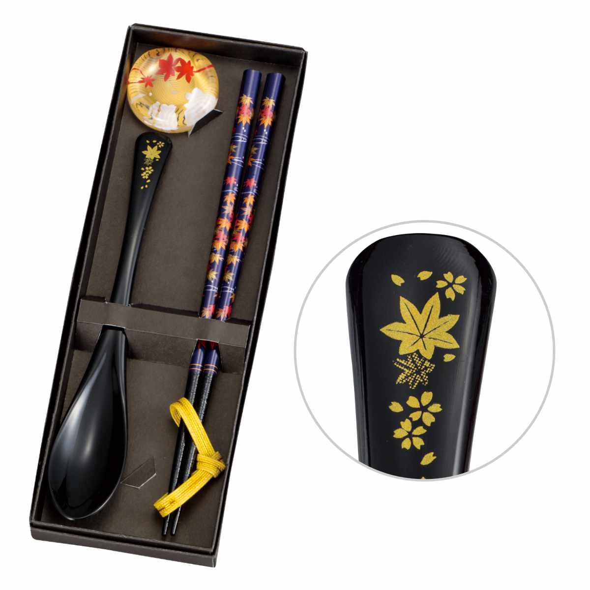 ●お箸22.5cm、スプーン19.5cm、箸置き、スプーンレストのセット商品です。