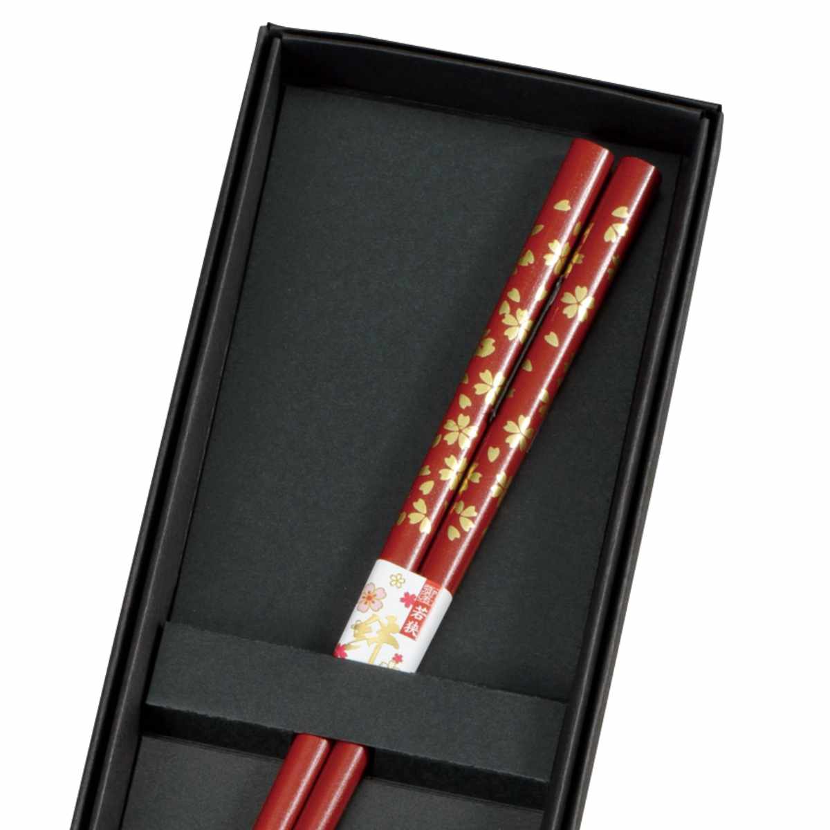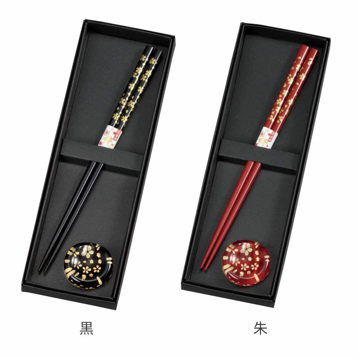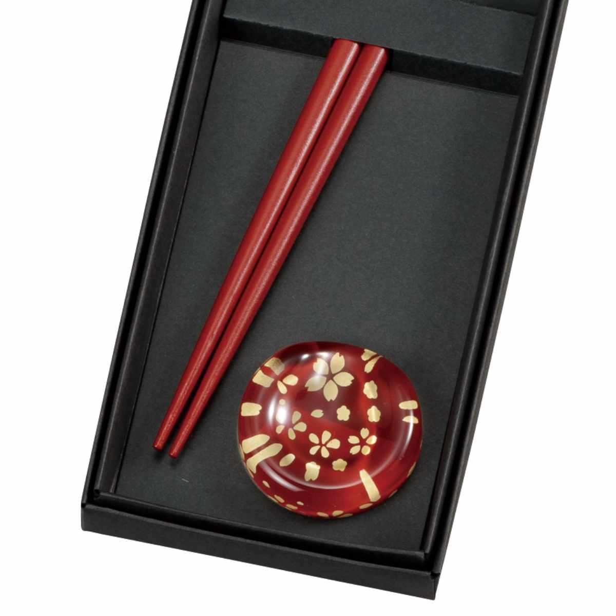 箸 箸置き 桜 2点セット ( 日本製 お箸 箸置 カトラリー 和柄 和 さくら はし おはし ハシ おしゃれ カトラリーレスト 贈り物 父の日 母の日 敬老の日 箱入り ) 【朱】