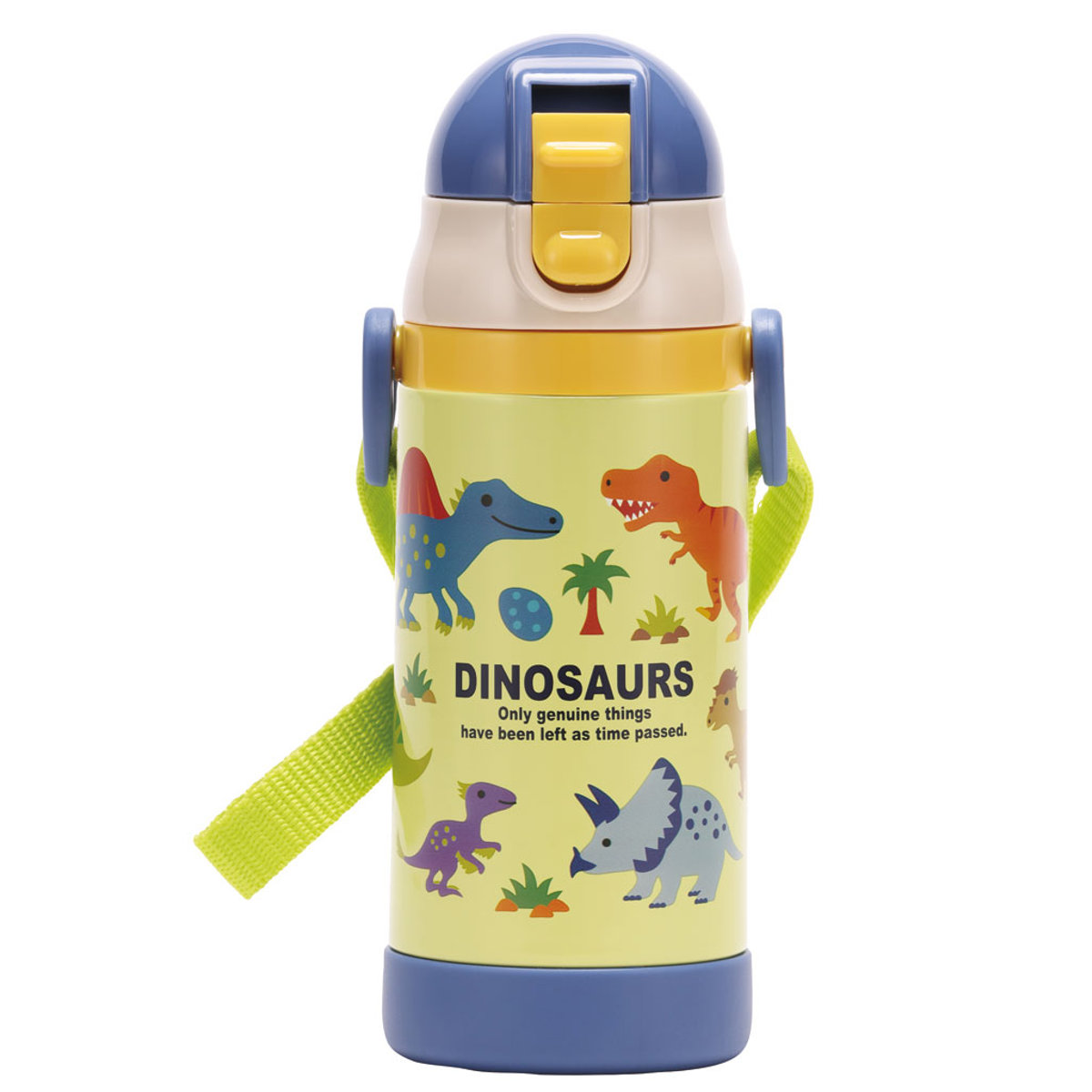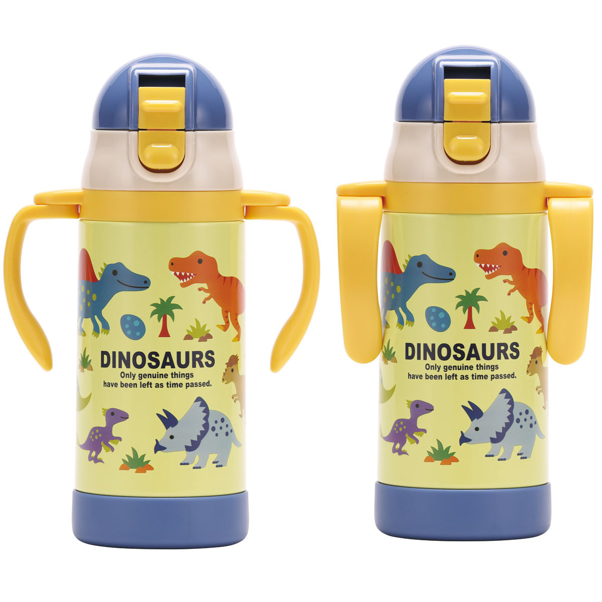 水筒 ストローステンマグ ディノサウルス 恐竜 2way 保冷 軽量 350ml ストロー付き 子ども ( ステンレス ストローマグ 直飲み 両手 マグ ワンタッチ 子供 ハンドル ベルト付き ボトル マグボトル キャラクター ストローボトル )