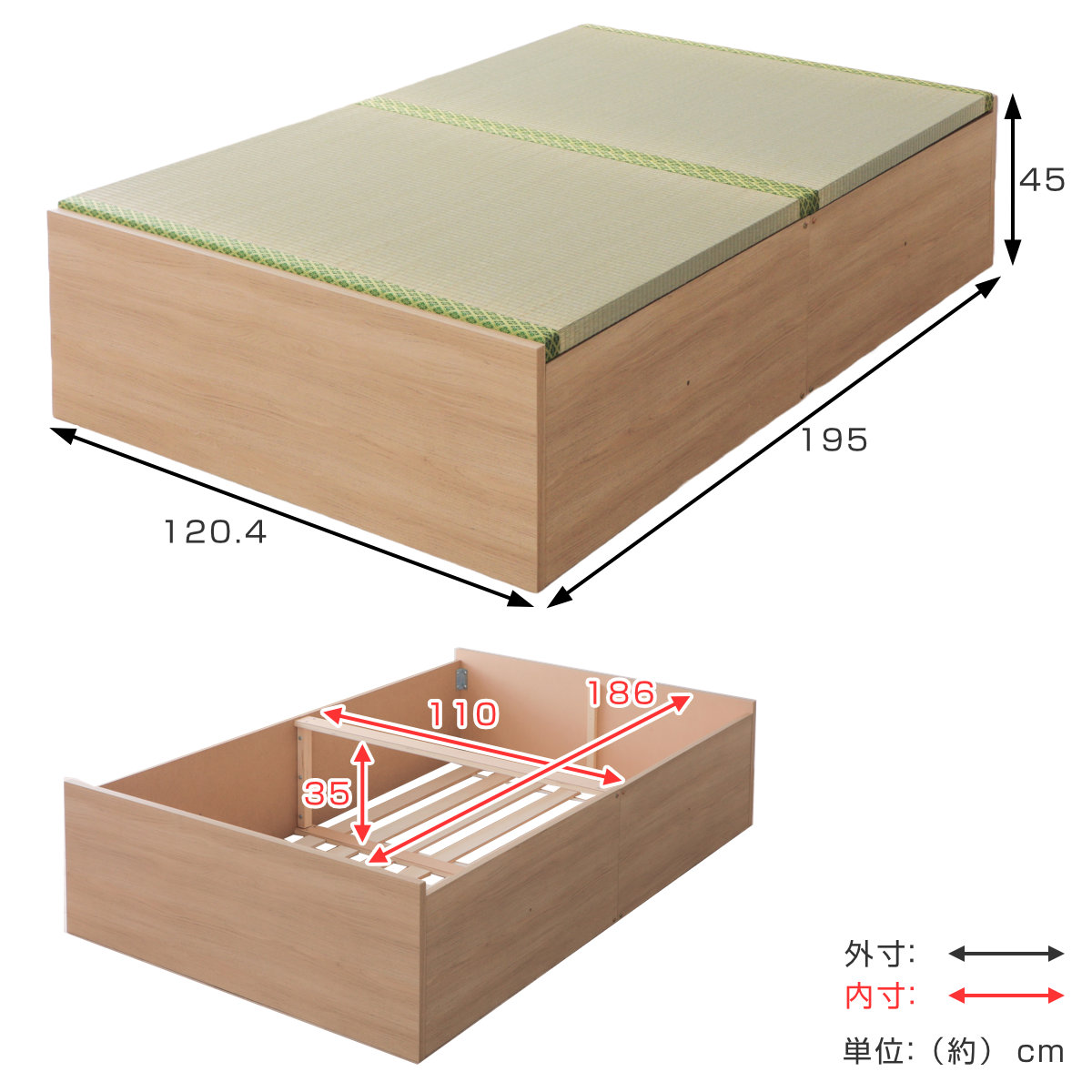 関連キーワード:省スペース ベット ベッドフレーム シンプル おしゃれ お洒落 オシャレ 和室 インテリア 家具 模様替え 新築 施主支給 新生活 引越 便利 1人用 2人用 繋げる 畳ユニット モダン お昼寝 家事スペース 連結できる 工事不要 幅120 奥行195 高さ45 cm 大容量