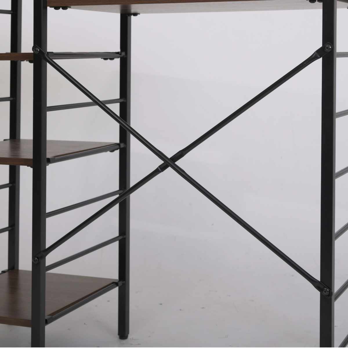 | ガタつきを防ぐアジャスター付き ラックの脚裏にはアジャスターが付いているので、ガタつきを軽減できます。 | 安定感を高めるクロスバー 背面はクロスバーで補強しています。抜け感のあるオープン仕様でも横揺れを軽減できます。 |