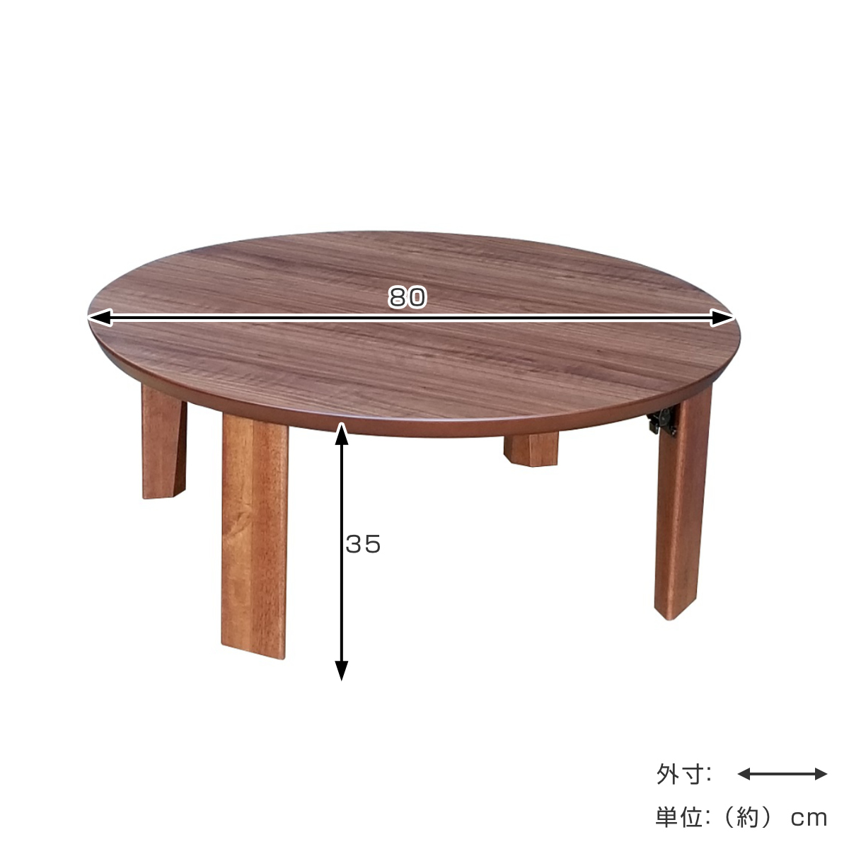 ローテーブル 折りたたみ 円型 直径80cm 座卓マロン ( テーブル 天然木 木製 折り畳み 丸 円形 完成品 折れ脚 リビングテーブル センターテーブル 日本製 ウォールナット 机 ちゃぶ台 折りたたみテーブル おしゃれ 食卓 和風 ) 【ウォールナット】