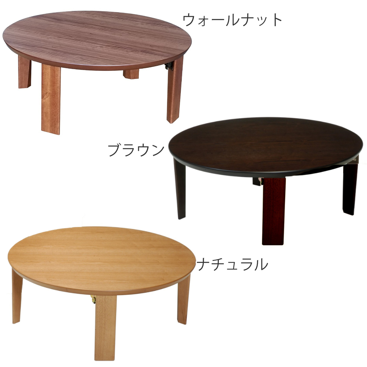 ローテーブル 折りたたみ 円型 直径90cm 座卓マロン ( テーブル 天然木 木製 折り畳み 丸 円形 完成品 折れ脚 リビングテーブル センターテーブル 日本製 ウォールナット 机 ちゃぶ台 折りたたみテーブル おしゃれ 食卓 和風 ) 【ウォールナット】