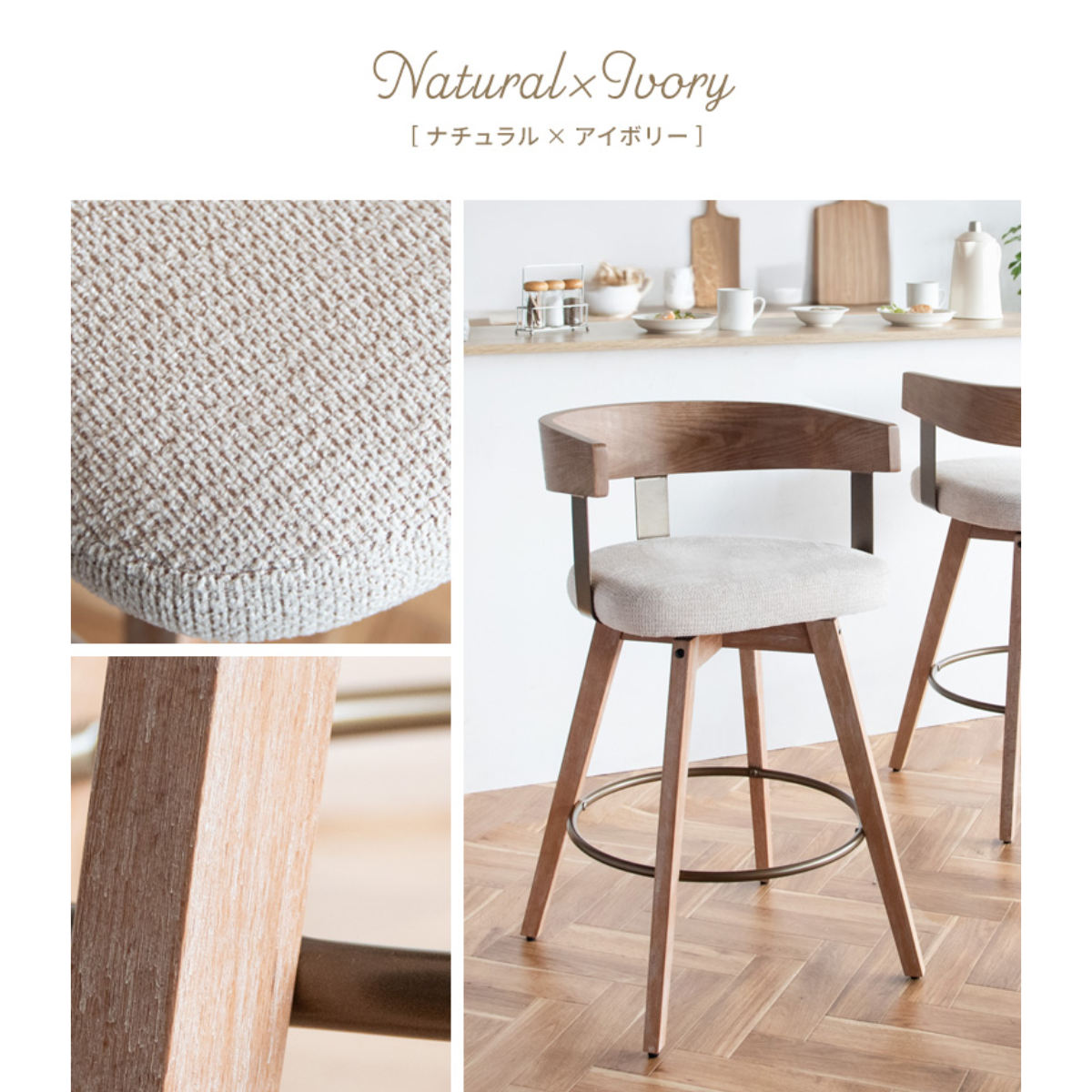 カウンターチェア 回転式 座面高67cm バーチェア Satio ( 背もたれ付き チェア 木製 天然木 回転 フットレスト ハイチェア バースツール イス 椅子 足置き 広めの座面 いす スツール チェアー おしゃれ ハイタイプ キッチン ) 【ホワイト×グレー】