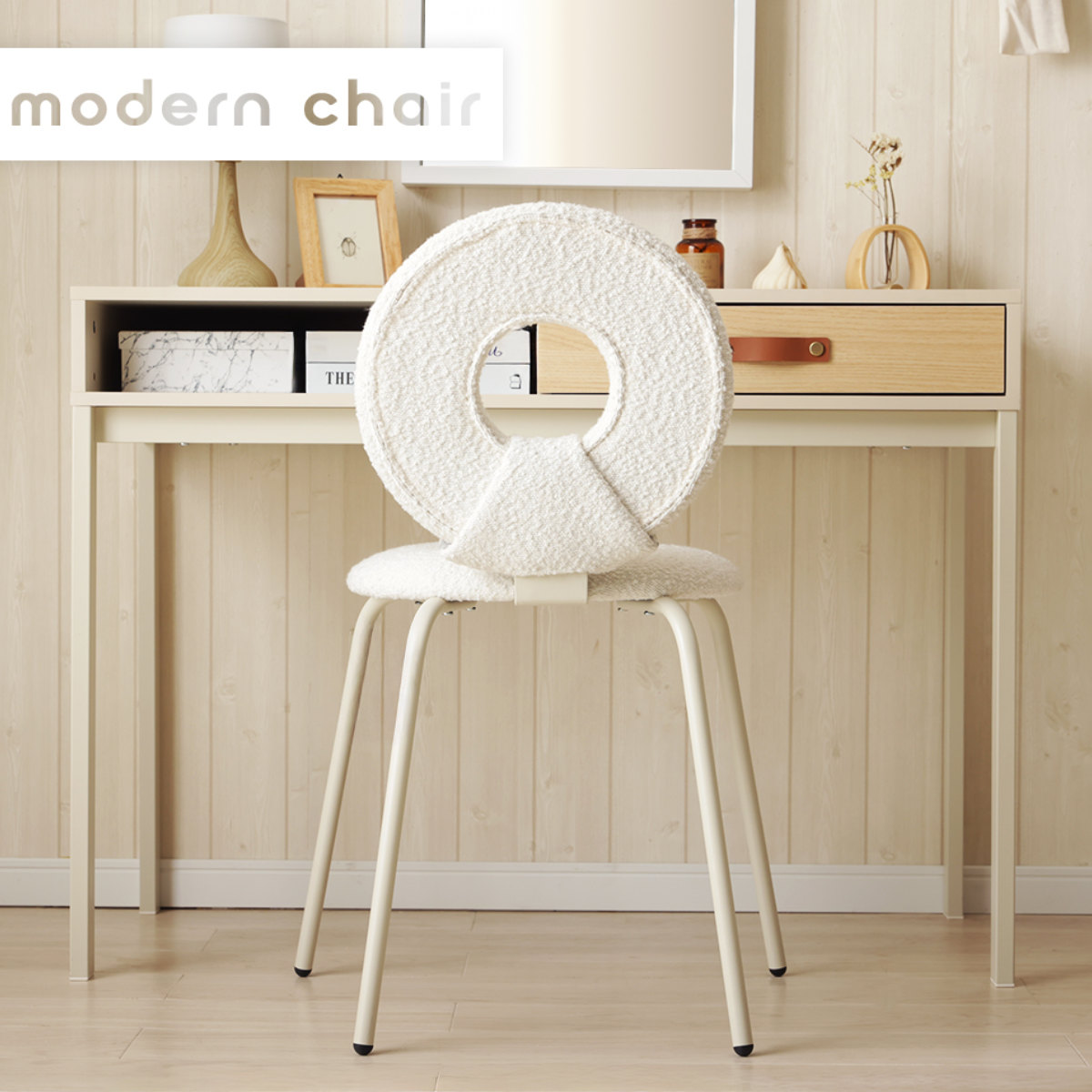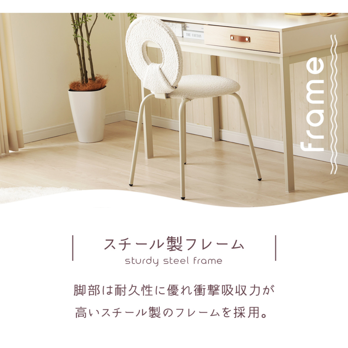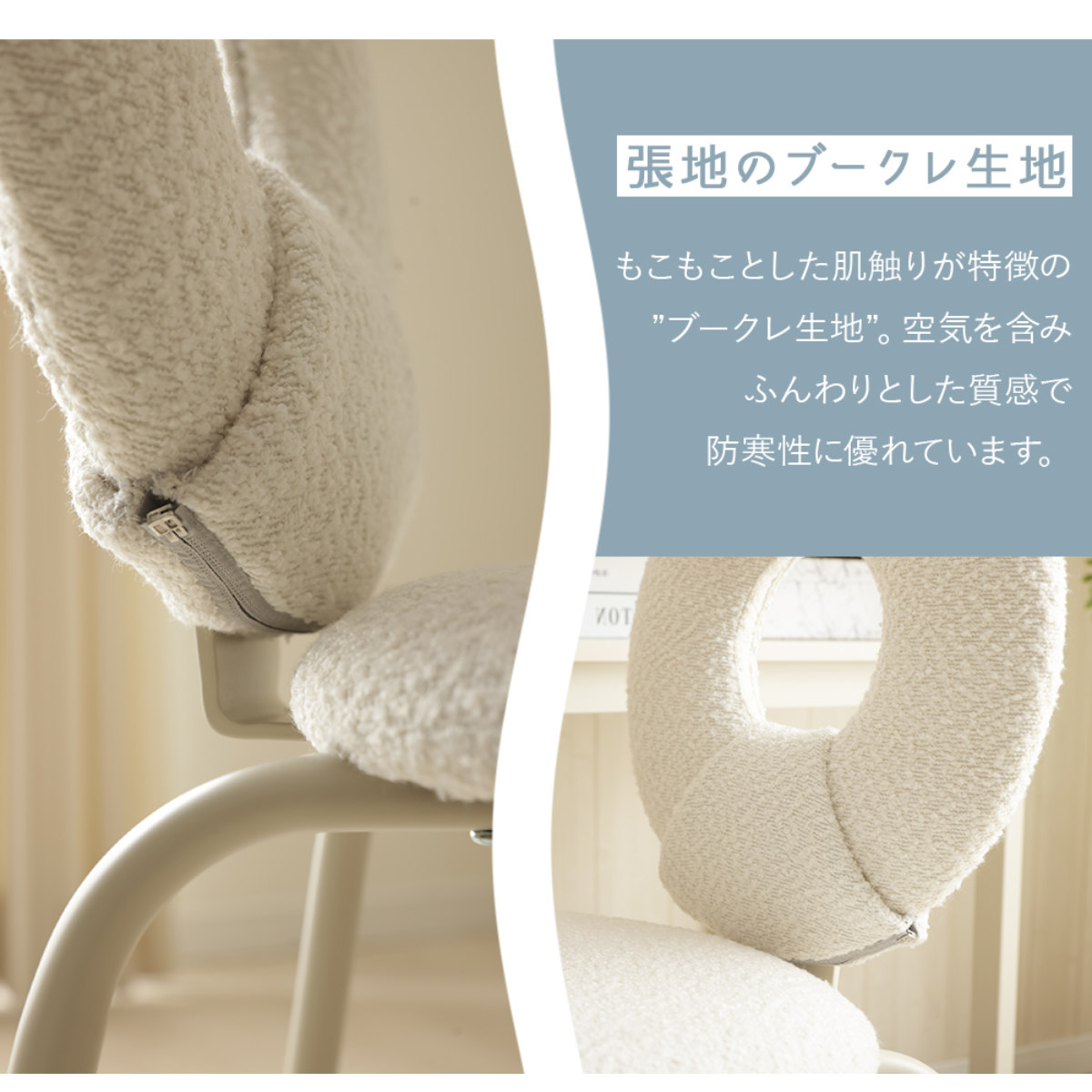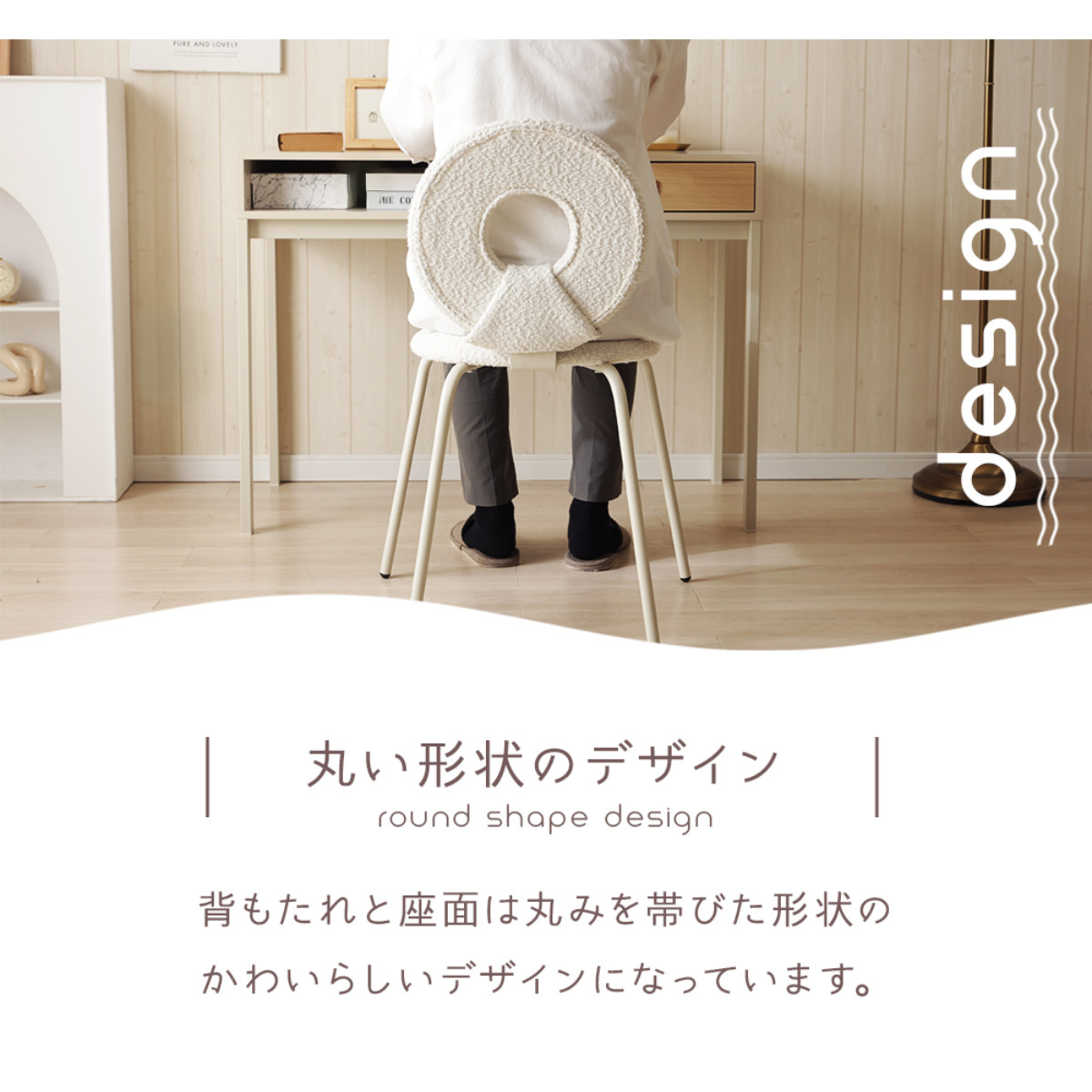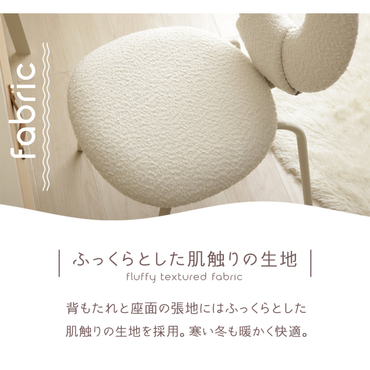 ダイニングチェア 座面高49cm ブークレ生地 ワークチェア モダンチェア ( ダイニング チェア チェアー イス 椅子 いす デスクチェア ふわふわ アームレス 食卓椅子 可愛い 背もたれ ドーナツ ファブリック ホワイト 白 )