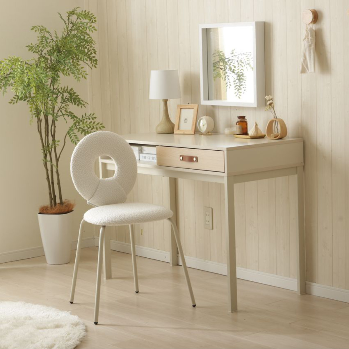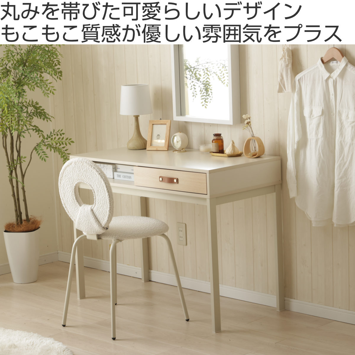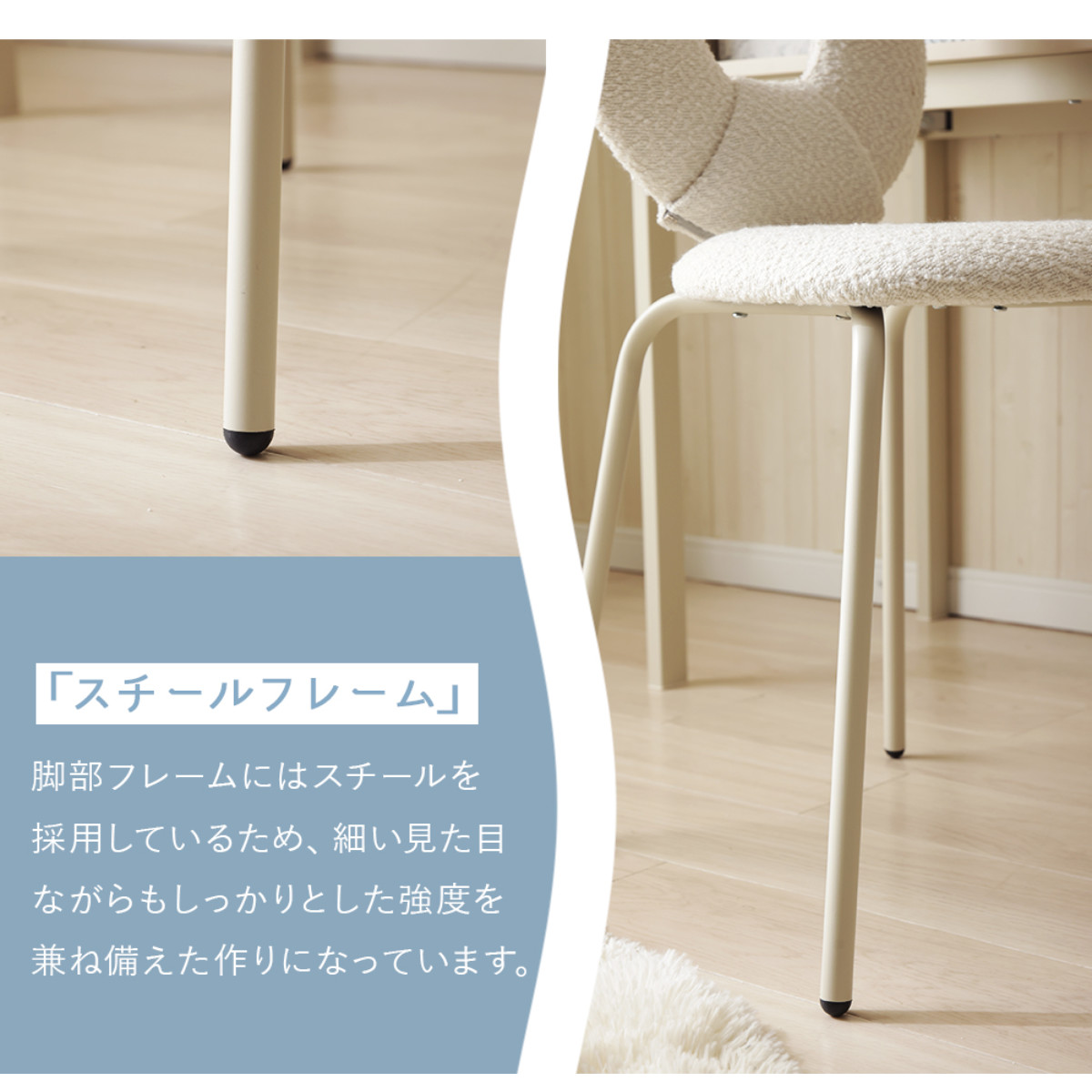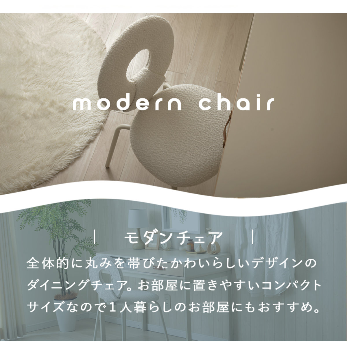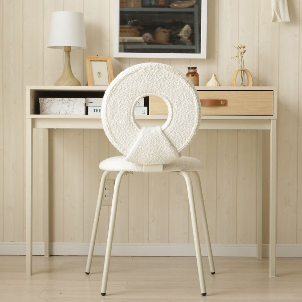 ダイニングチェア 座面高49cm ブークレ生地 ワークチェア モダンチェア ( ダイニング チェア チェアー イス 椅子 いす デスクチェア ふわふわ アームレス 食卓椅子 可愛い 背もたれ ドーナツ ファブリック ホワイト 白 )