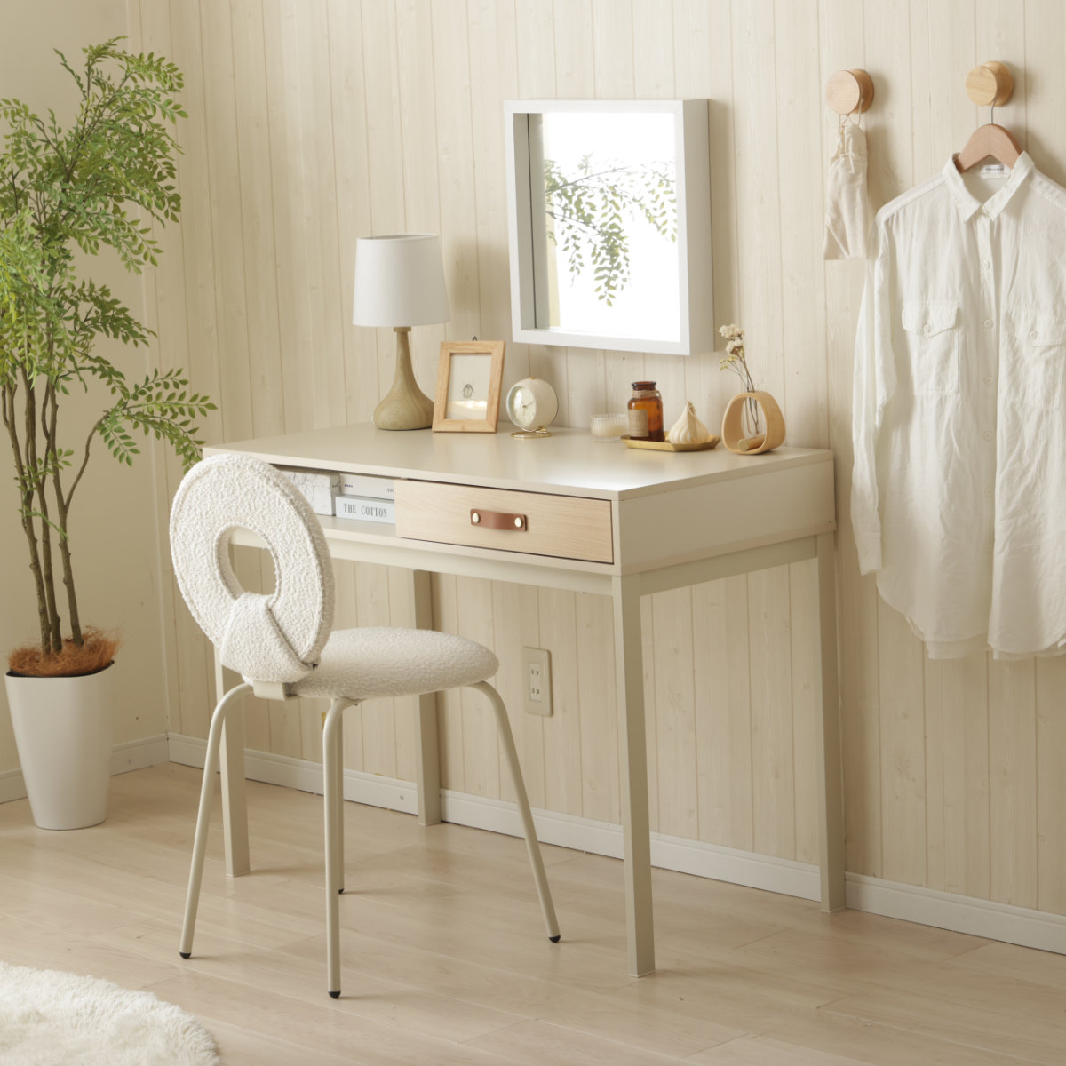 全体的に丸みを帯びた可愛らしいデザインで、お部屋に優しい雰囲気をプラスしてくれるチェアです。コンパクトなサイズ感で、デスクチェアとしてもダイニングチェアとしてもおすすめです。