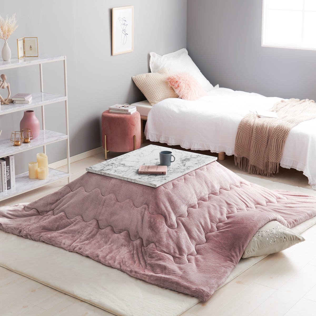 ホワイトインテリアやモノトーンインテリアに合いやすく、使いやすいコンパクトサイズです。冬はこたつとして、オフシーズンにはセンターテーブルとして季節を問わずお使いいただけます。