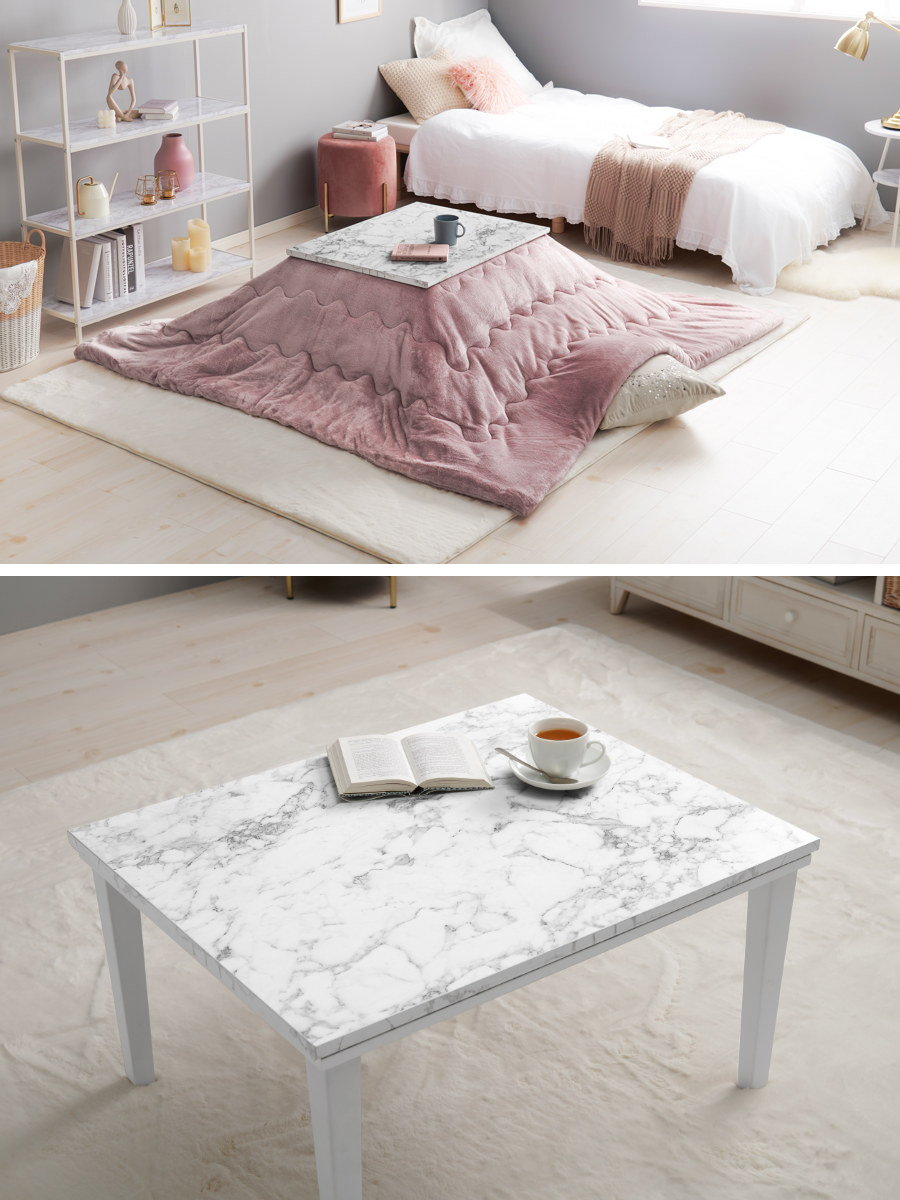 憧れの大理石インテリアを叶える大理石柄のこたつテーブル