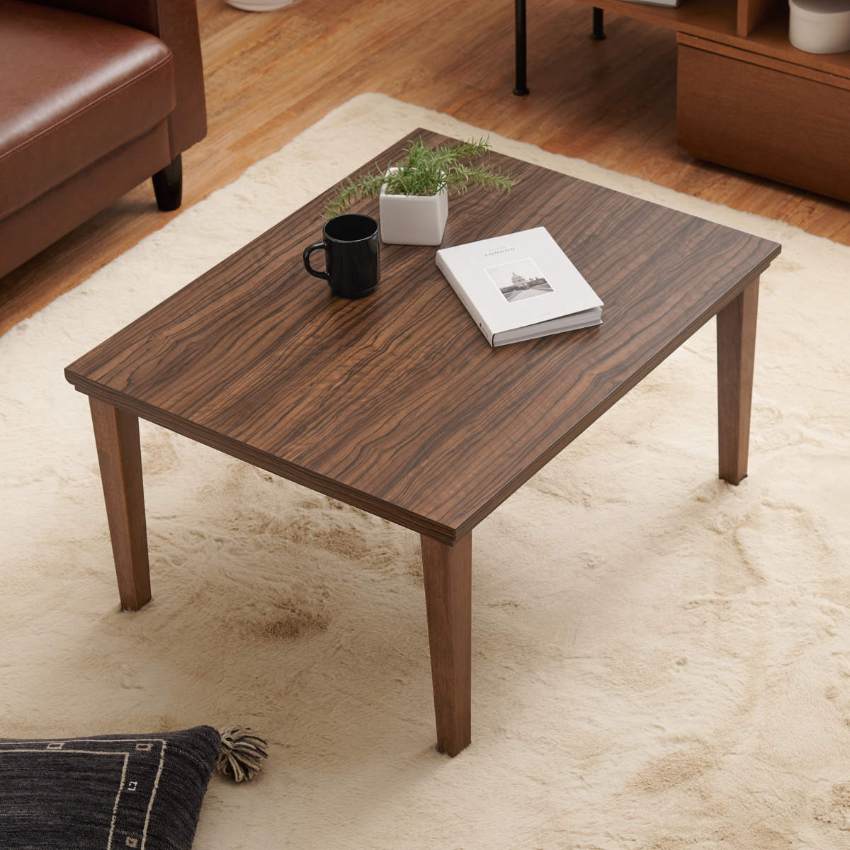 個性的な木目柄の天板がインテリアに映えるこたつテーブル。こたつに見えないスタイリッシュなデザインなので、 オフシーズンもローテーブルとして活躍します。