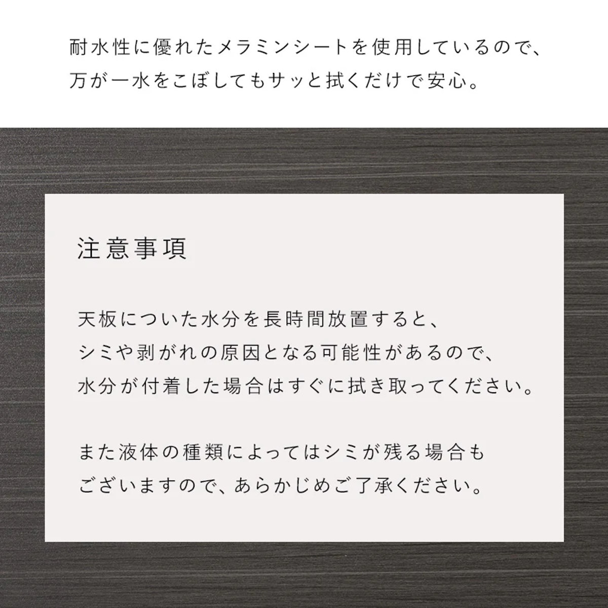 天板はメラミン樹脂なので耐水性に優れているので、飲み物をこぼしてもお手入れがしやすく、リビングテーブルにも重宝します。