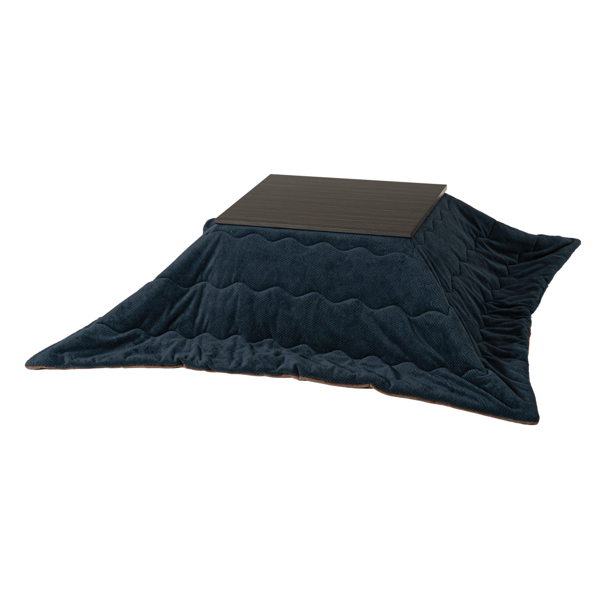 こたつセット 2点セット 木目柄 幅75cm こたつテーブル×1 うす掛けふとん×1 ( こたつ テーブル こたつ布団 リビングテーブル ローテーブル 長方形 コタツ 1年中 使える 座卓 おしゃれ 遠赤外線 奥行60cm センターテーブル ) 【ダークブラウン×ネイビー】