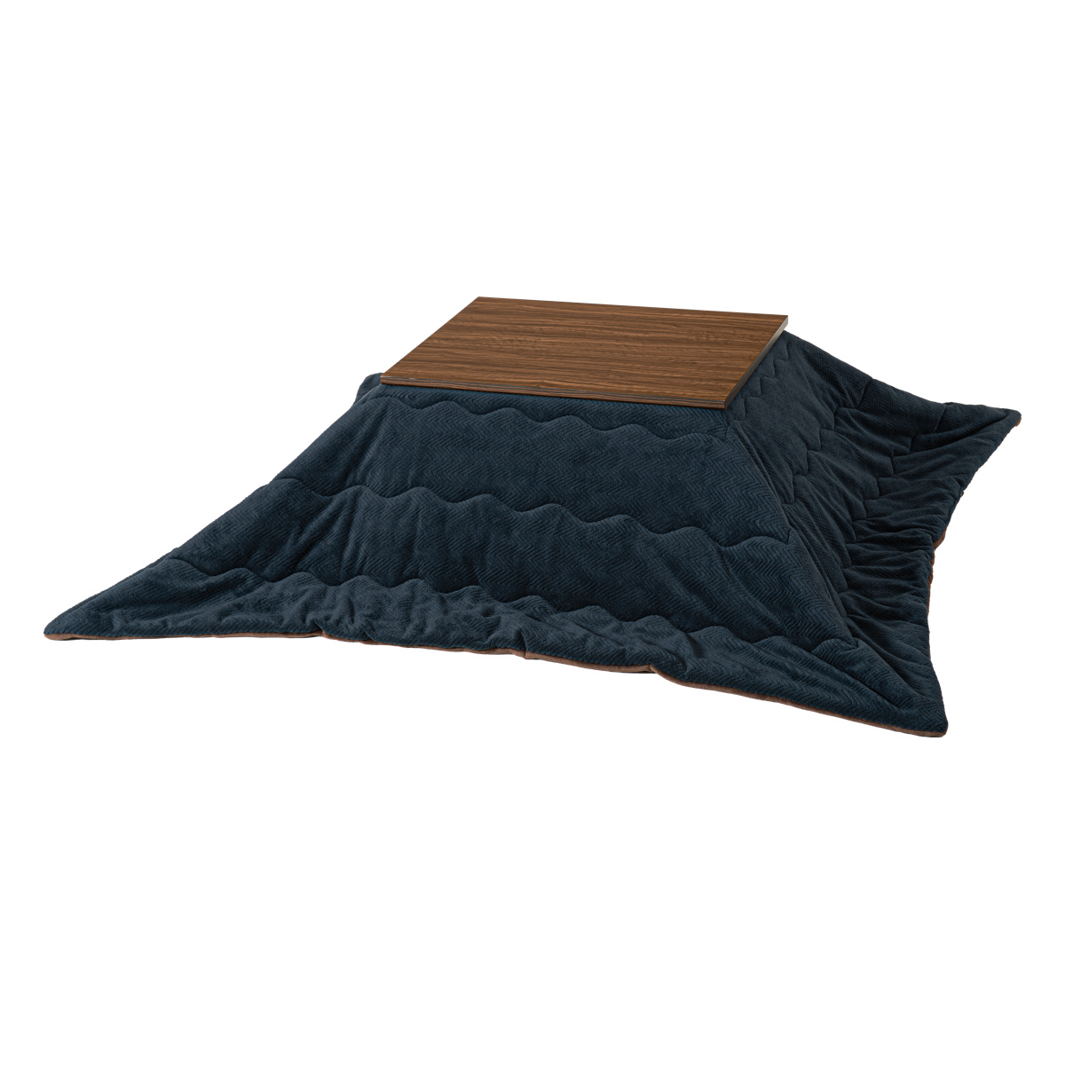 こたつセット 2点セット 木目柄 幅75cm こたつテーブル×1 うす掛けふとん×1 ( こたつ テーブル こたつ布団 リビングテーブル ローテーブル 長方形 コタツ 1年中 使える 座卓 おしゃれ 遠赤外線 奥行60cm センターテーブル ) 【ライトブラウン×ネイビー】