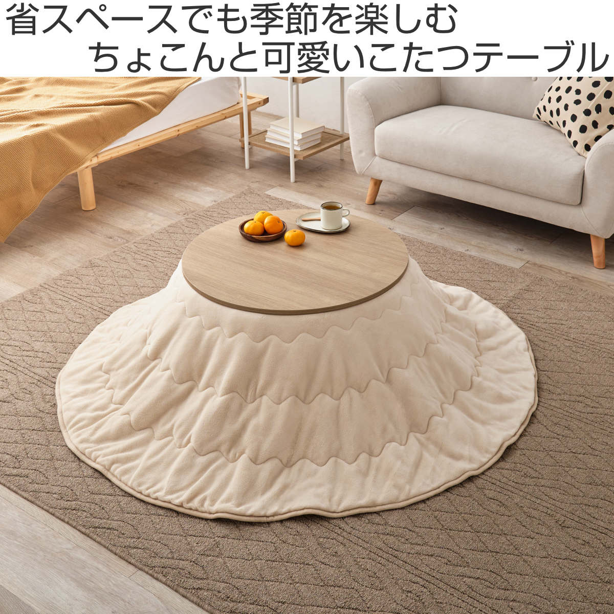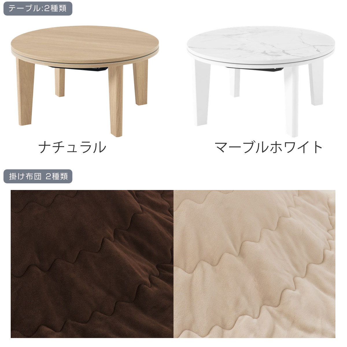 こたつセット 2点セット 円型 幅68cm 大理石調 木目調 テーブル×1 うす掛けふとん×1 ( こたつ テーブル 小さい こたつ布団 リビングテーブル ローテーブル コタツ コンパクト 丸 円形 リビング 1年中 使える 座卓 一人暮らし ) 【ナチュラル×ブラウン】