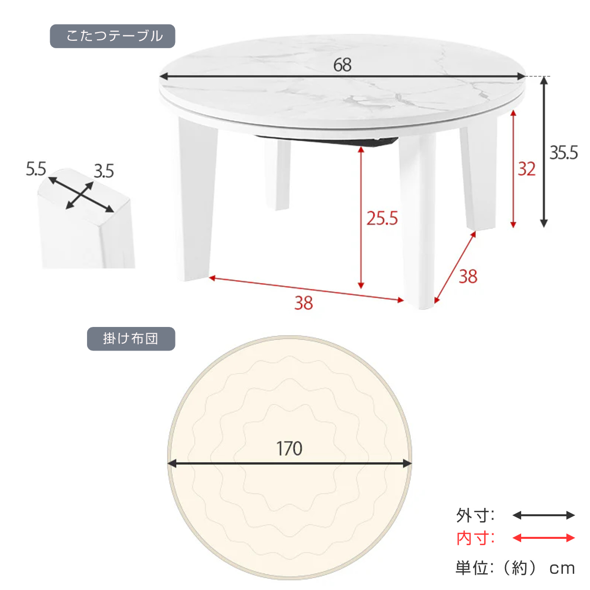 | サイズ | テーブル:幅68×奥行68×高さ35.5(cm) 布団:直径190(cm) |