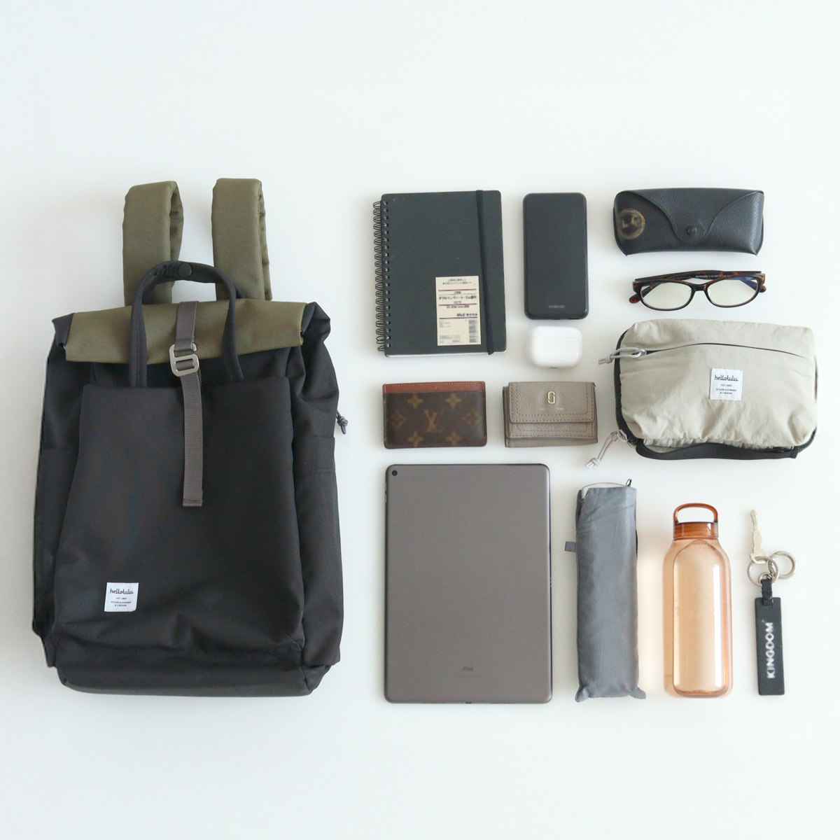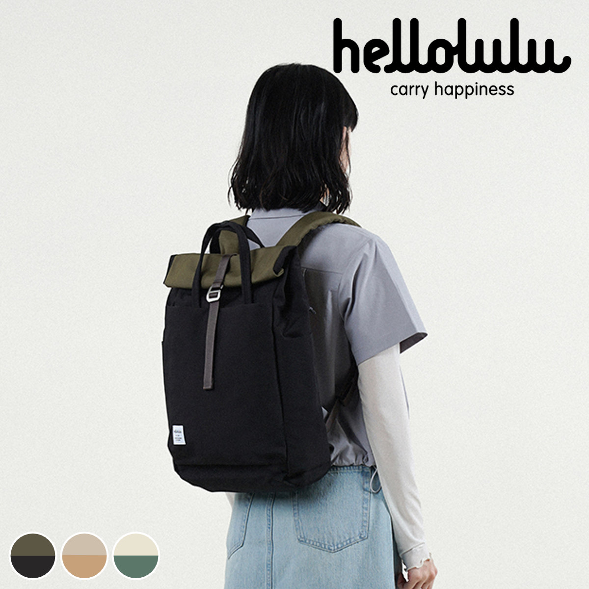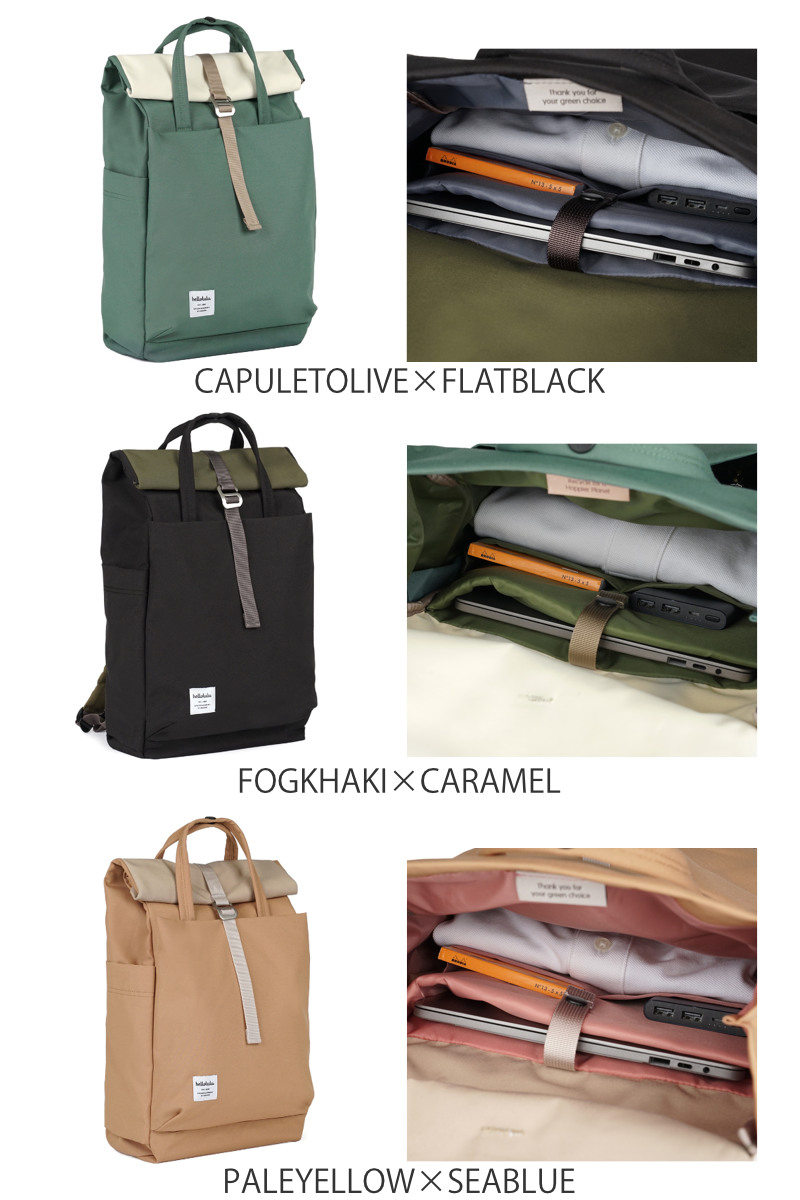 【25年FW新色】リュック hellolulu ケーシー KACY ( ハロルル リュックサック リュック ビジネスリュック バッグ かばん 鞄 11L レディース メンズ 軽い 撥水 通学 通勤 PC収納 ロールトップ おしゃれ ) 【FOGKHAKI×CARAMEL】