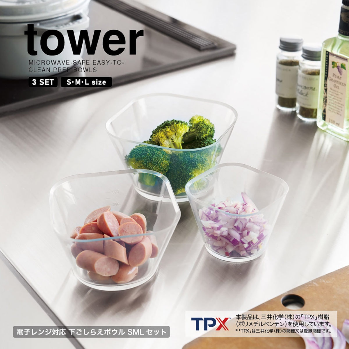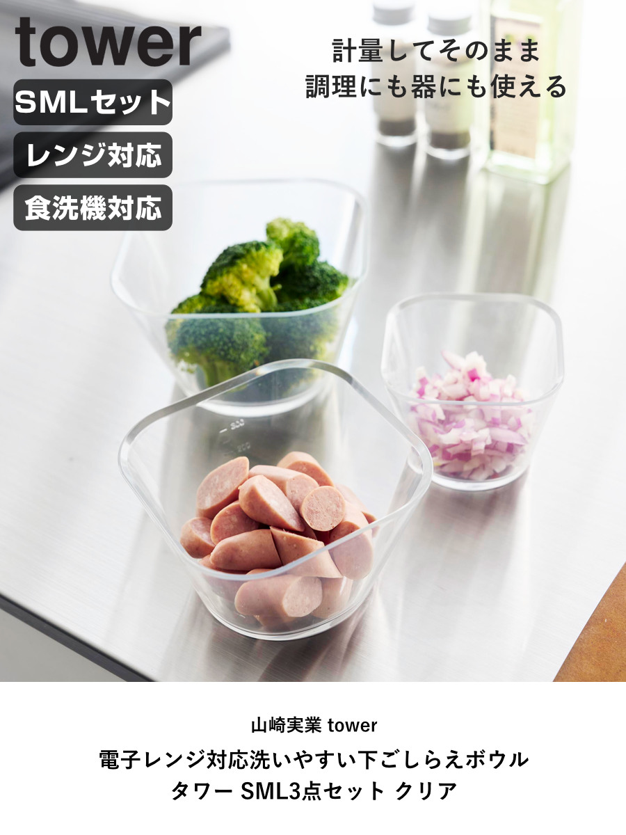 山崎実業 tower 電子レンジ対応洗いやすい下ごしらえボウル タワー SML3点セット クリア ( 4903208101288 タワーシリーズ 下ごしらえボウル 3個組 透明 ボウル SML 3個 洗いやすい )