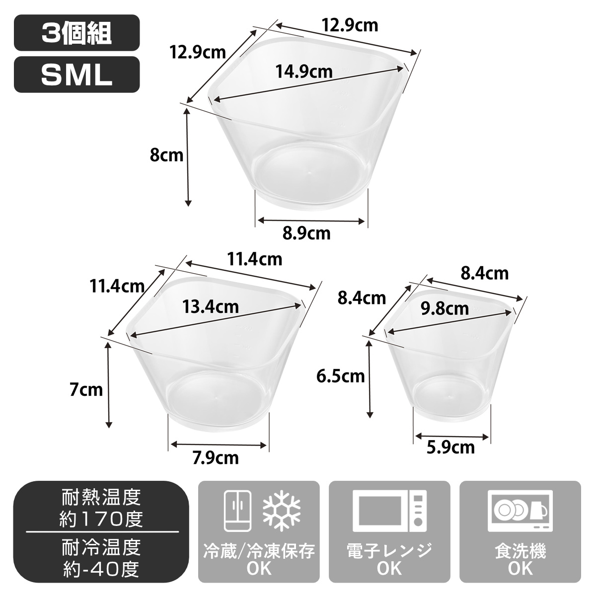 | サイズ | S:幅8.4×奥行8.4×高さ6.5cm M:幅11.4×奥行11.4×高さ7cm L:幅12.9×奥行12.9×高さ8cm |